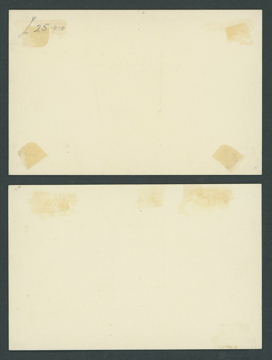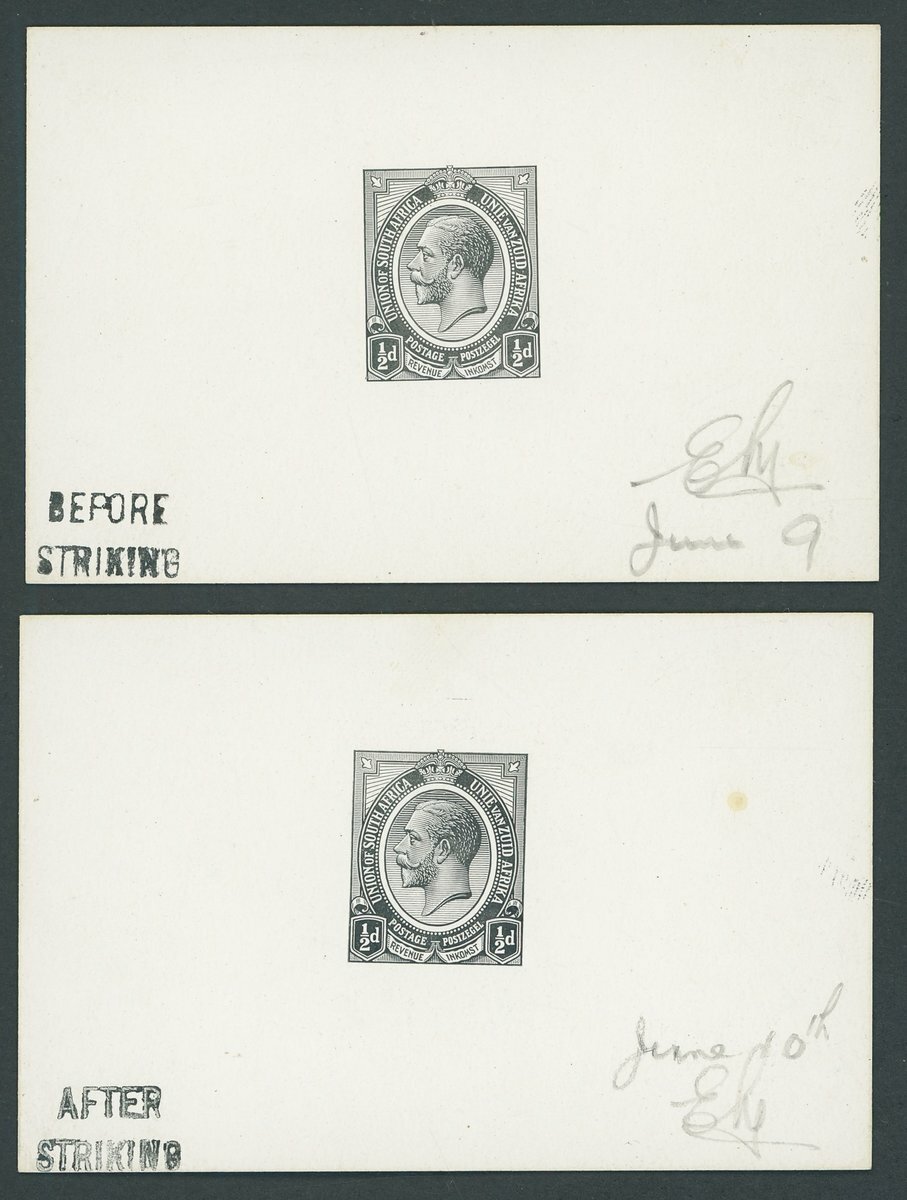 Die proofs of the completed design in black on white glazed card (2), each (82 x 60mm.), the first marked