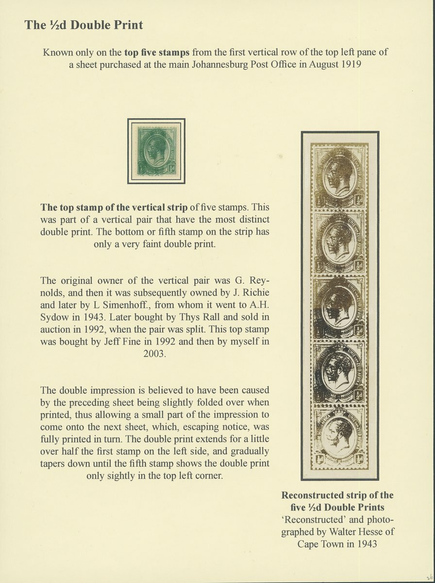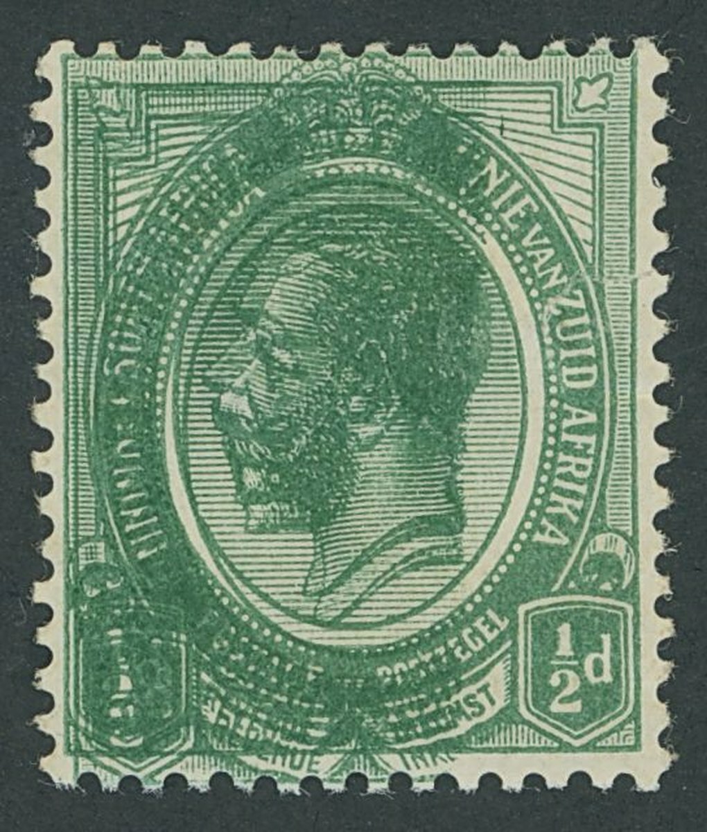 ½d. green, variety doubly printed, distinctive doubling particularly affecting the left two thirds of the stamp, tiny closed tear at right not affecting the appearance but mentioned for accuracy; this is [1] of the original strip of five, fine and rare, an iconic showpiece of South African philately. S.G. 3a, £12,000