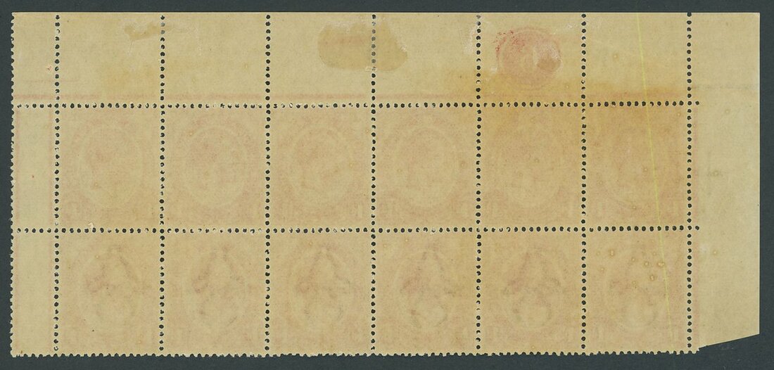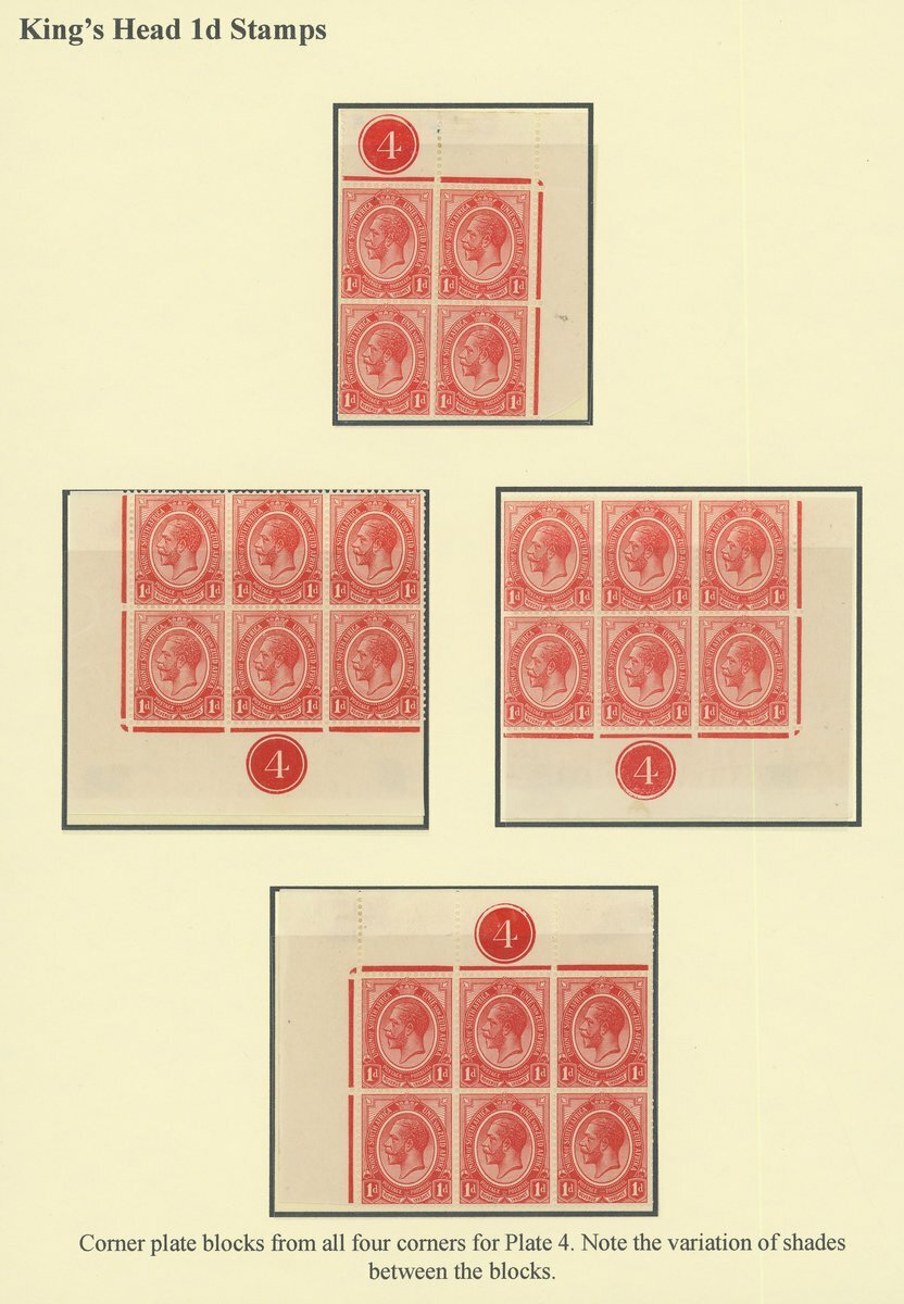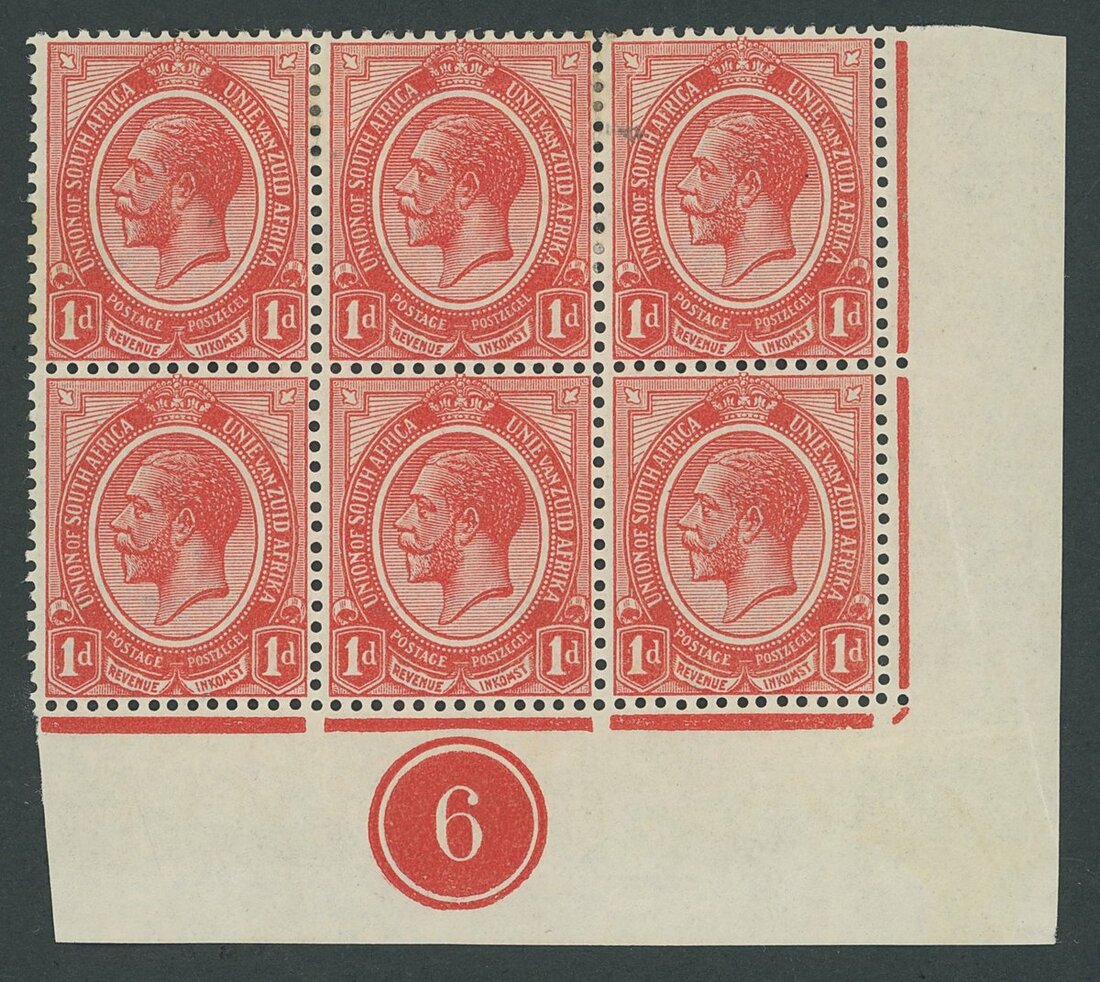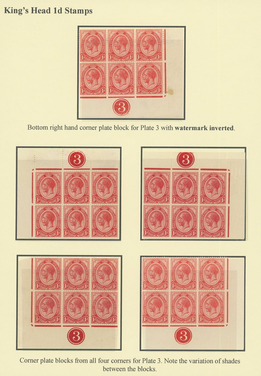 A group of mainly plate number blocks written up on album pages comprising Plate 3 with corner blocks of six from all four corners of the sheet (4) and a further block with watermark inverted, Plate 4 with corner blocks of six from all four corners of the sheet (4) and a further corner block of four, Plate 6 with corner blocks of six (8, two from each corner of the sheet), further blocks of four, six and twelve (2, including one with downward shift of watermark resulting in the top row with no watermark) and a block of four and two singles with watermark inverted, Plate 7 with corner blocks of six from each corner of the sheet (4) a further block of four and a block of ten, also blocks of ten and twelve with no plate number, a few postal stationery cards and an unofficial 1d. bisect on cover; a good to fine lot