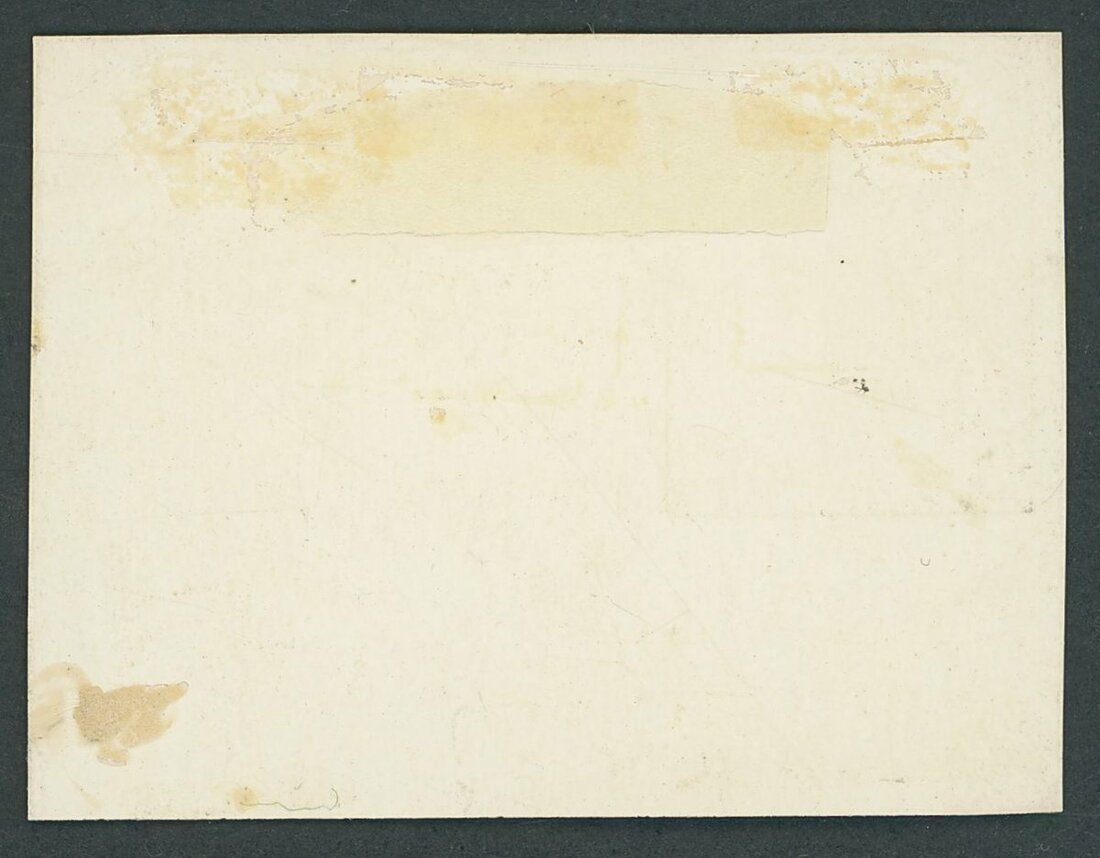 Die proof of the complete design in black on white glazed card (53 x 41mm.), inscribed in manuscript 'For hardening' and initialled and dated below; fine