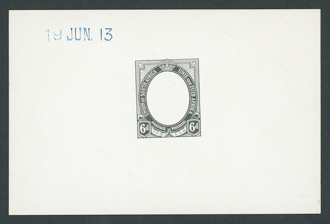 Die proof of the completed frame of the 6d. value in black on white glazed card (82 x 60mm.), dated