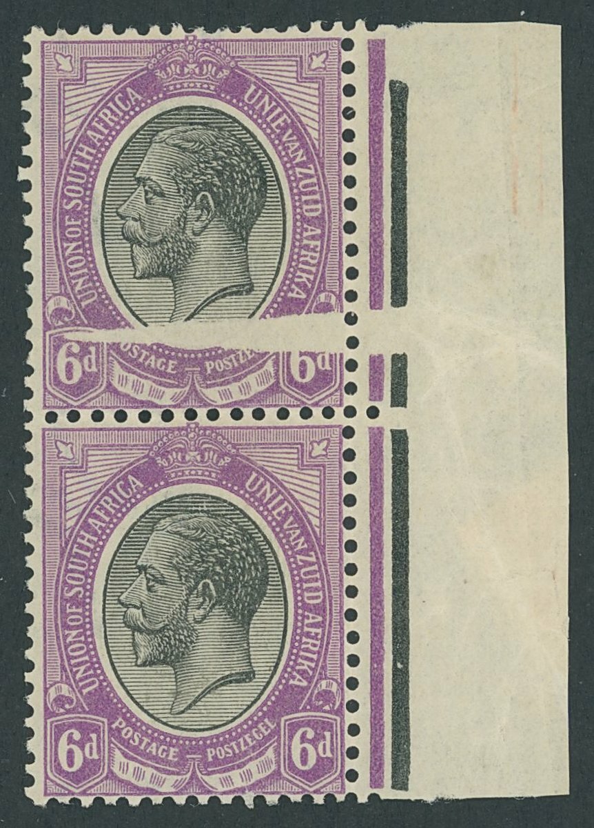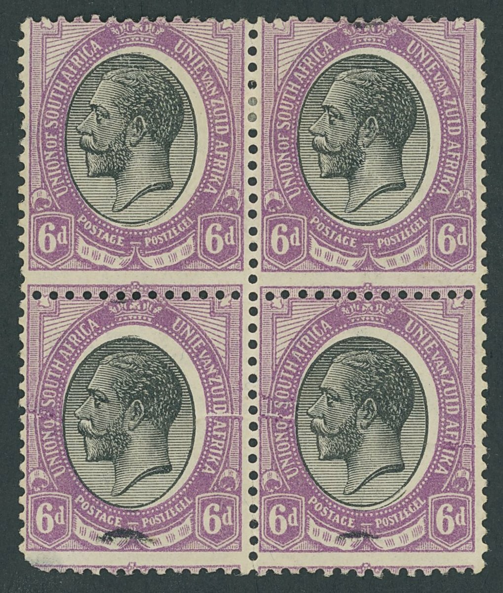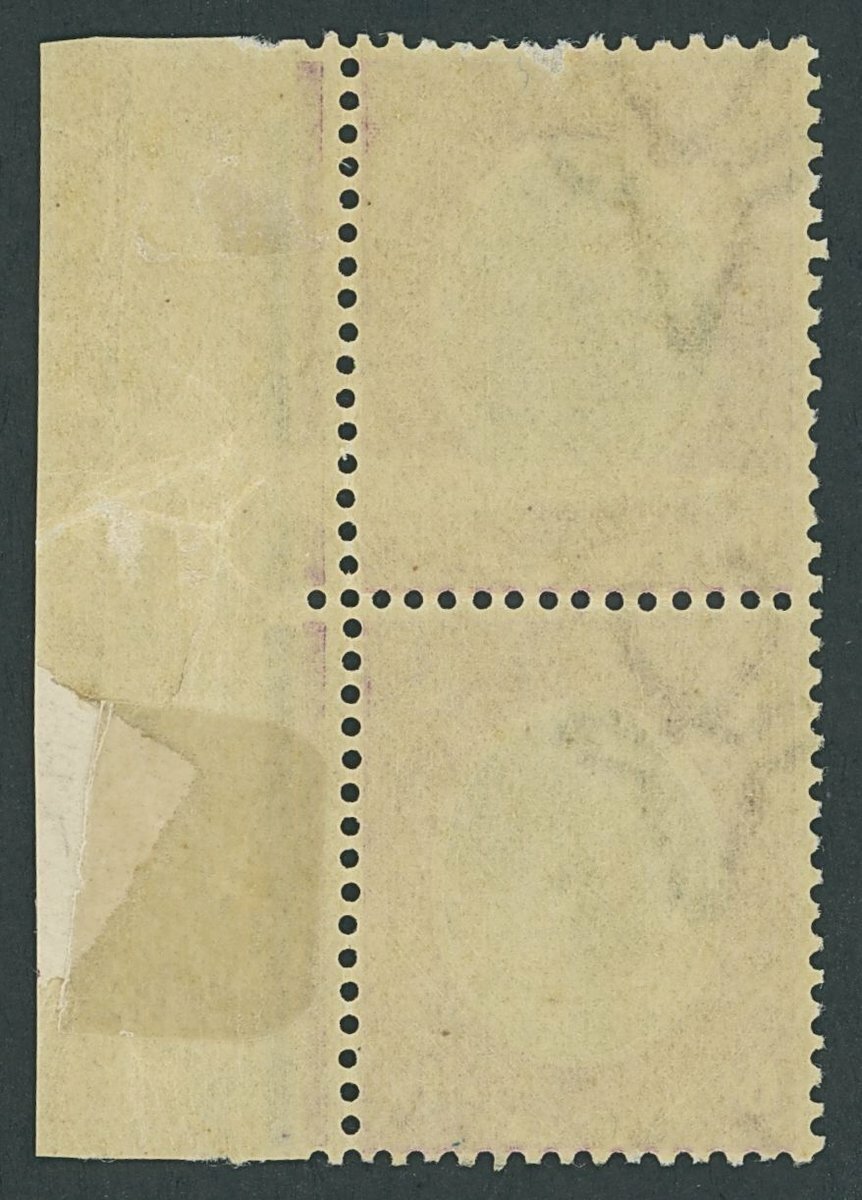 A small group of mutliples with varieties (3) comprising a pair from the right of the sheet, the top stamp partially printed as a result of a foreign object on the printing press, a block of four in a bright shade with the same error affecting the first vertical pair and a block of four with all stamps showing variety new moon, some black ink splashes at foot and one stamp thinned; a good group of striking varieties (3)