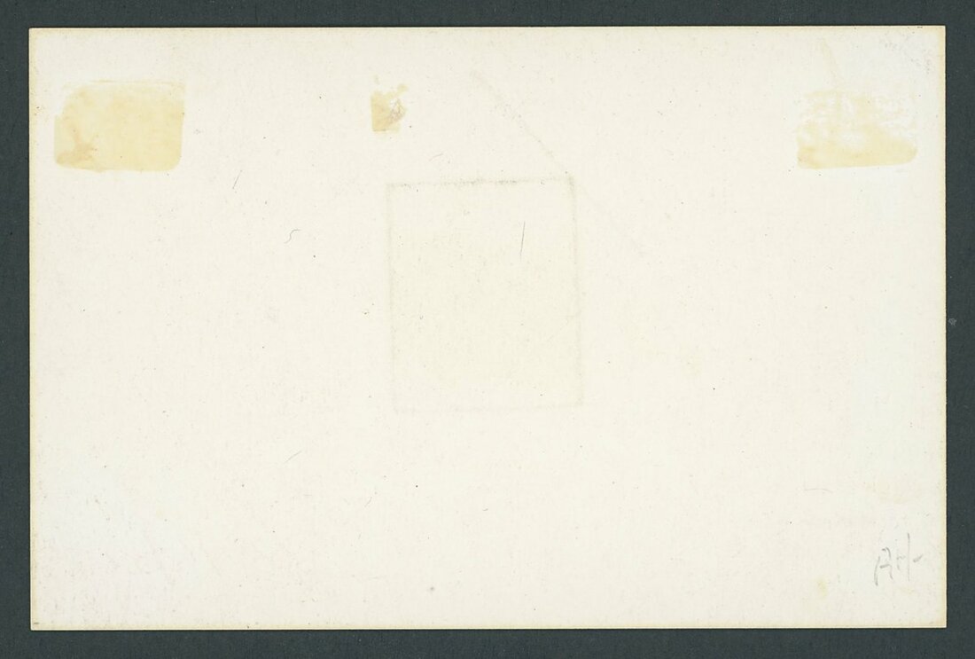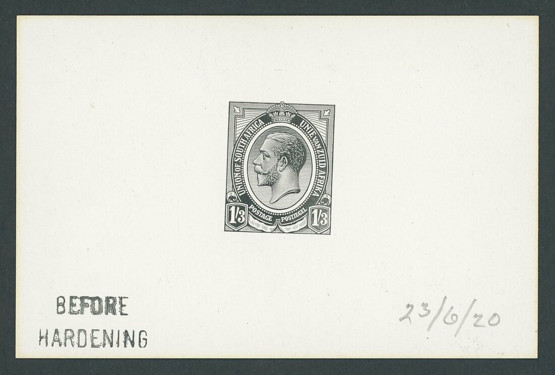 Die proof of the completed design in black on white glazed card ( 82 x 60mm.), marked