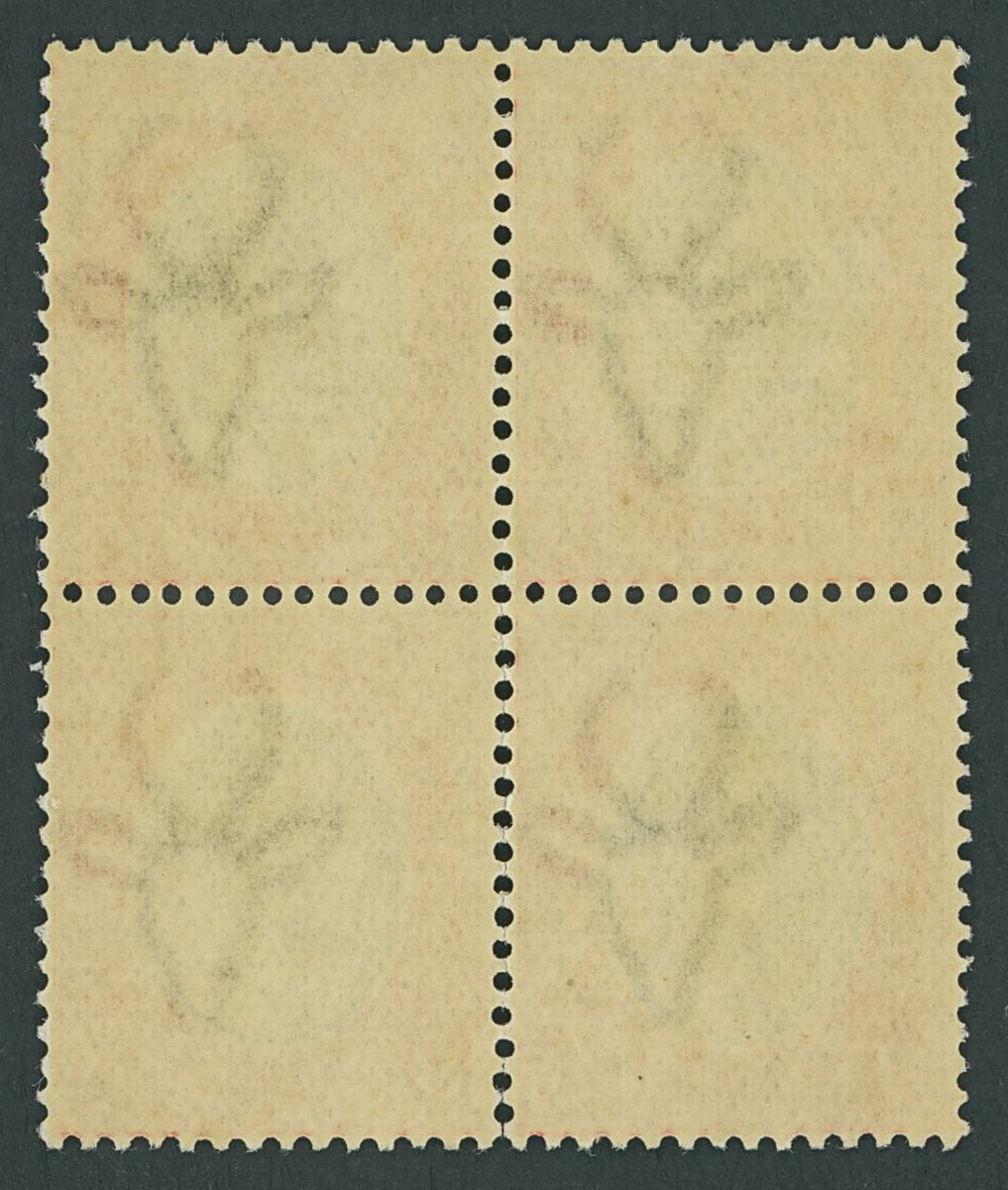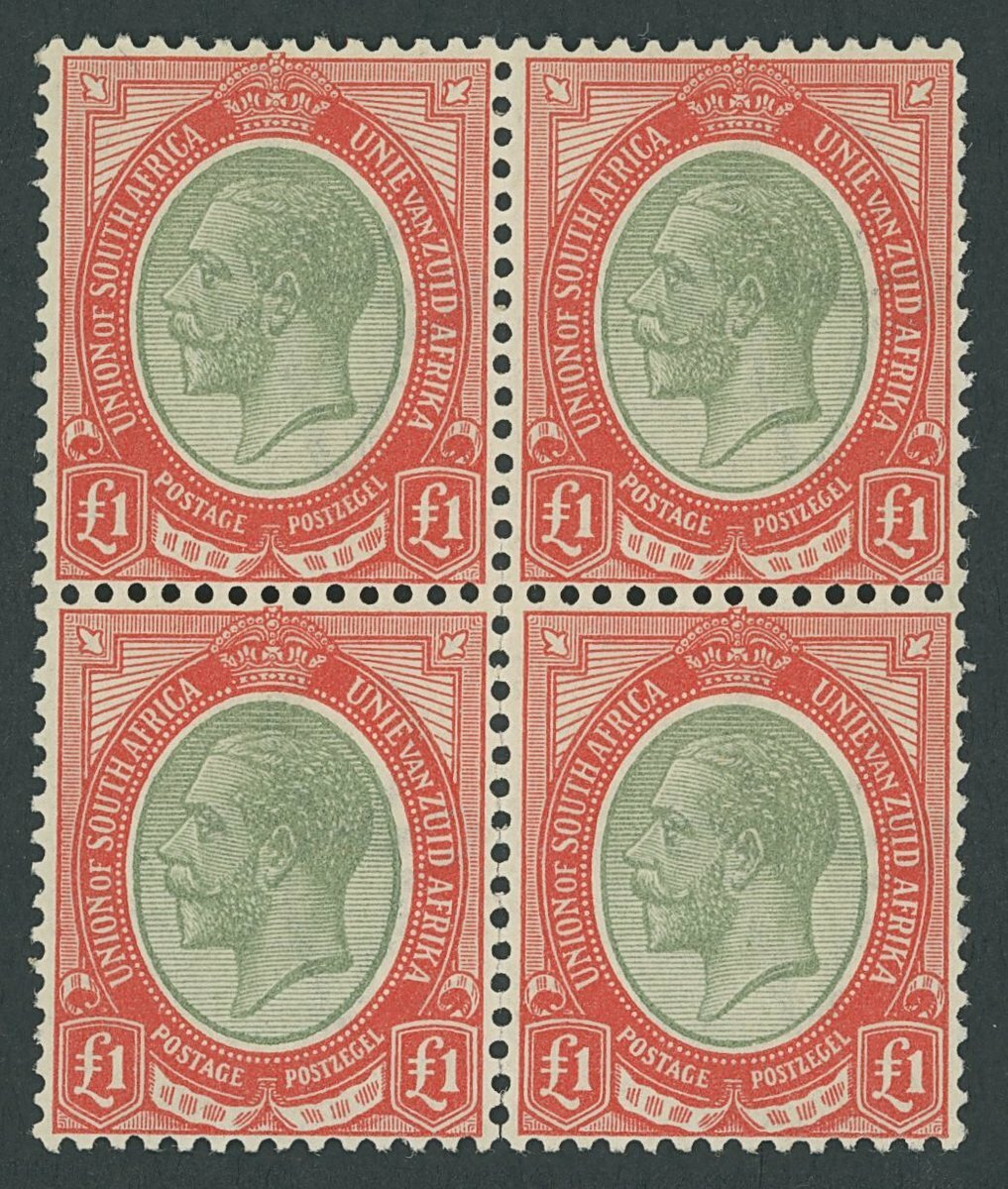 1924 £1 pale olive-green and red, a block of four; some minor perf. separation otherwise fine and lightly mounted mint; a very rare mutliple of this shade. B.P.A. Certificate (2012). S.G. 17a, £3,400+