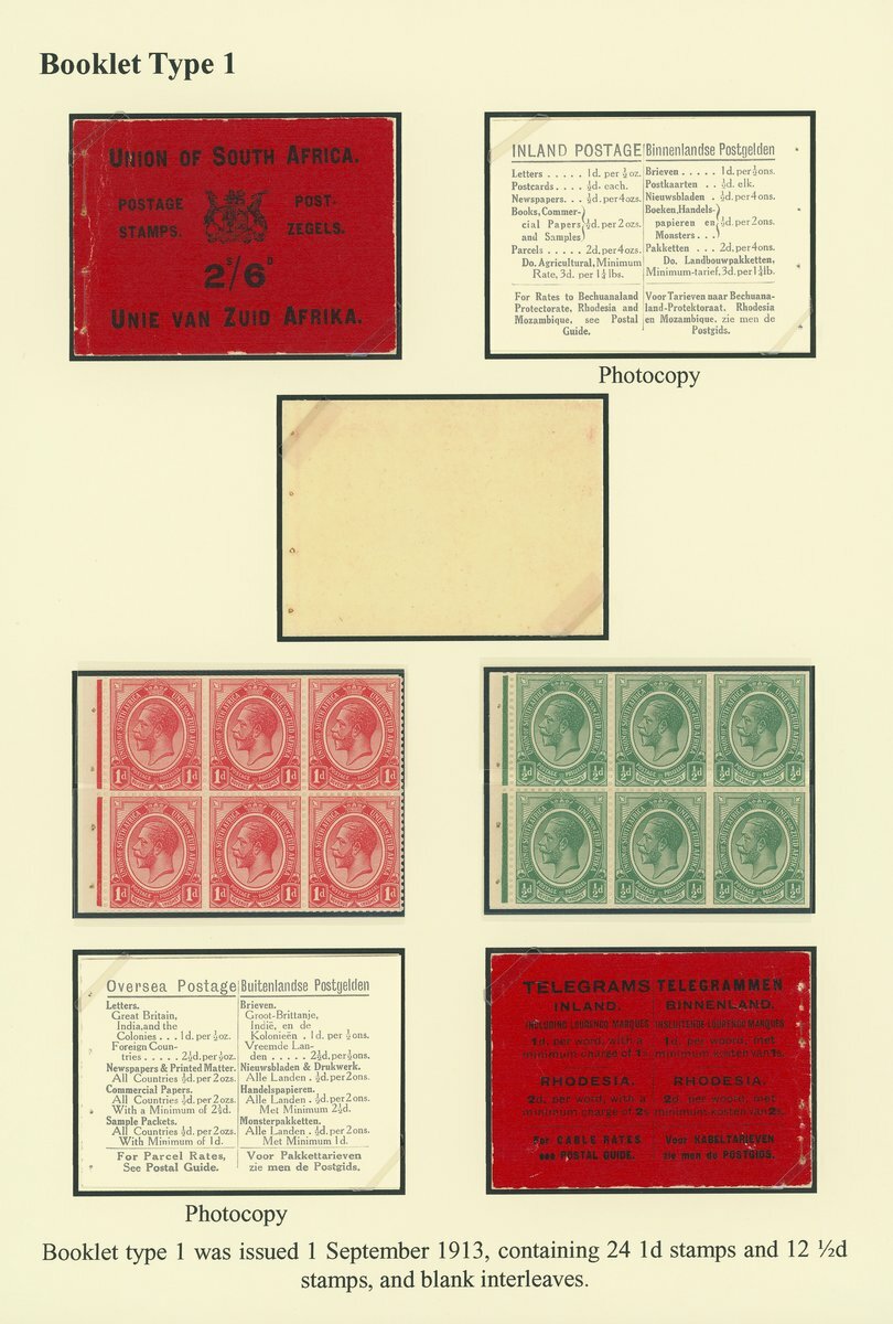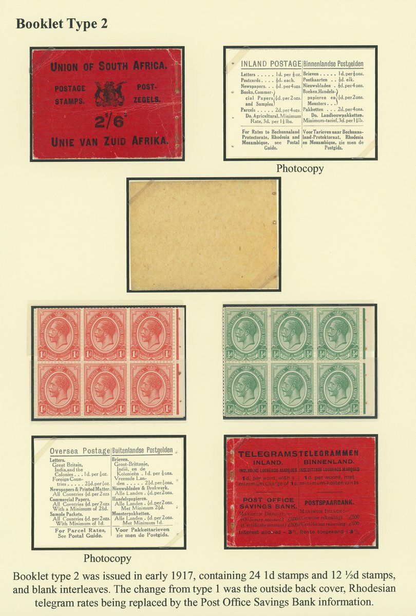 1913 2/6d. exploded booklets (2) Types I and II with front and back covers for each and with wax interleaf and a pane of six of the ½d. and 1d. for each written up on exhibition pages; fine