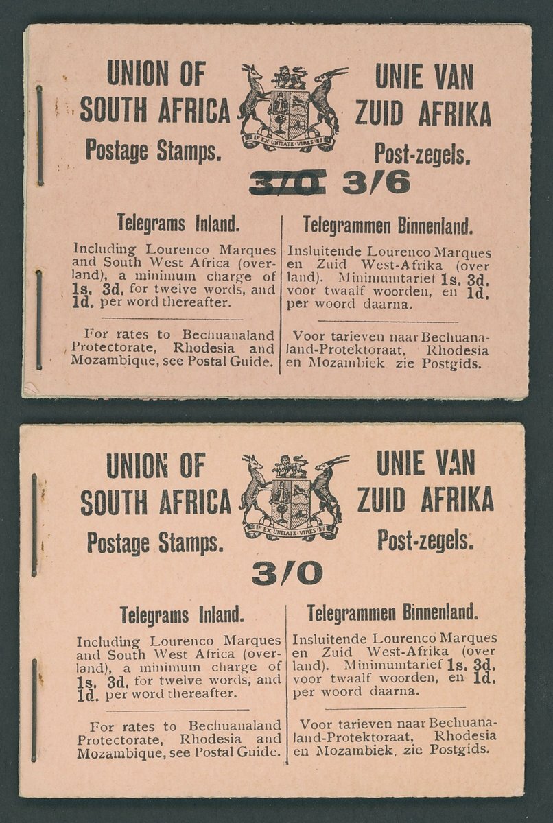 1921 3/- black on salmon-pink and 1922 3/6d. on 3/- in black on salmon-pink, both complete booklets stapled at left with panes and adverts intact, perforations trimmed in places; fine complete booklets. S.G. SB3, SB4, £2,000