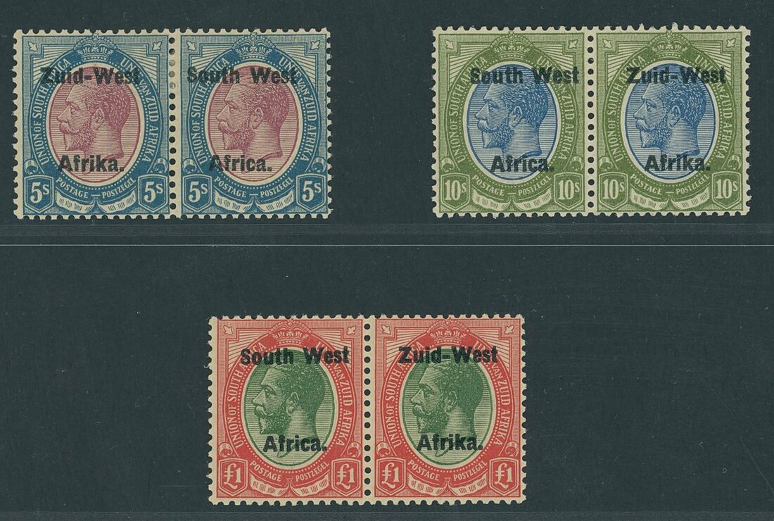 1923 Second Setting (10mm. between overprint) set of three, the 5/-, 10/- and £1 bilingual pairs; fine mint. S.G. 13-15, £1,700