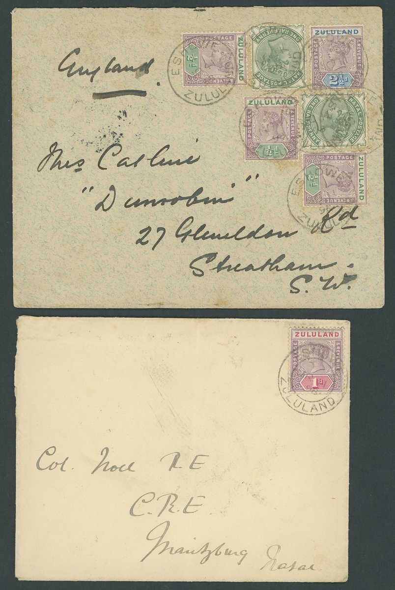 1898 (11 Nov.) envelope to London bearing 1894-96 ½d. (3) and 2½d. used in combination with Natal ½d. green (2), all tied by