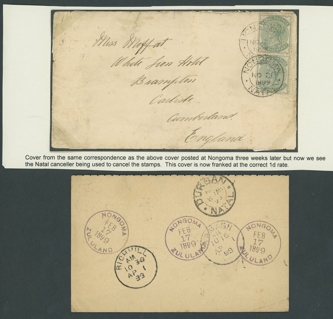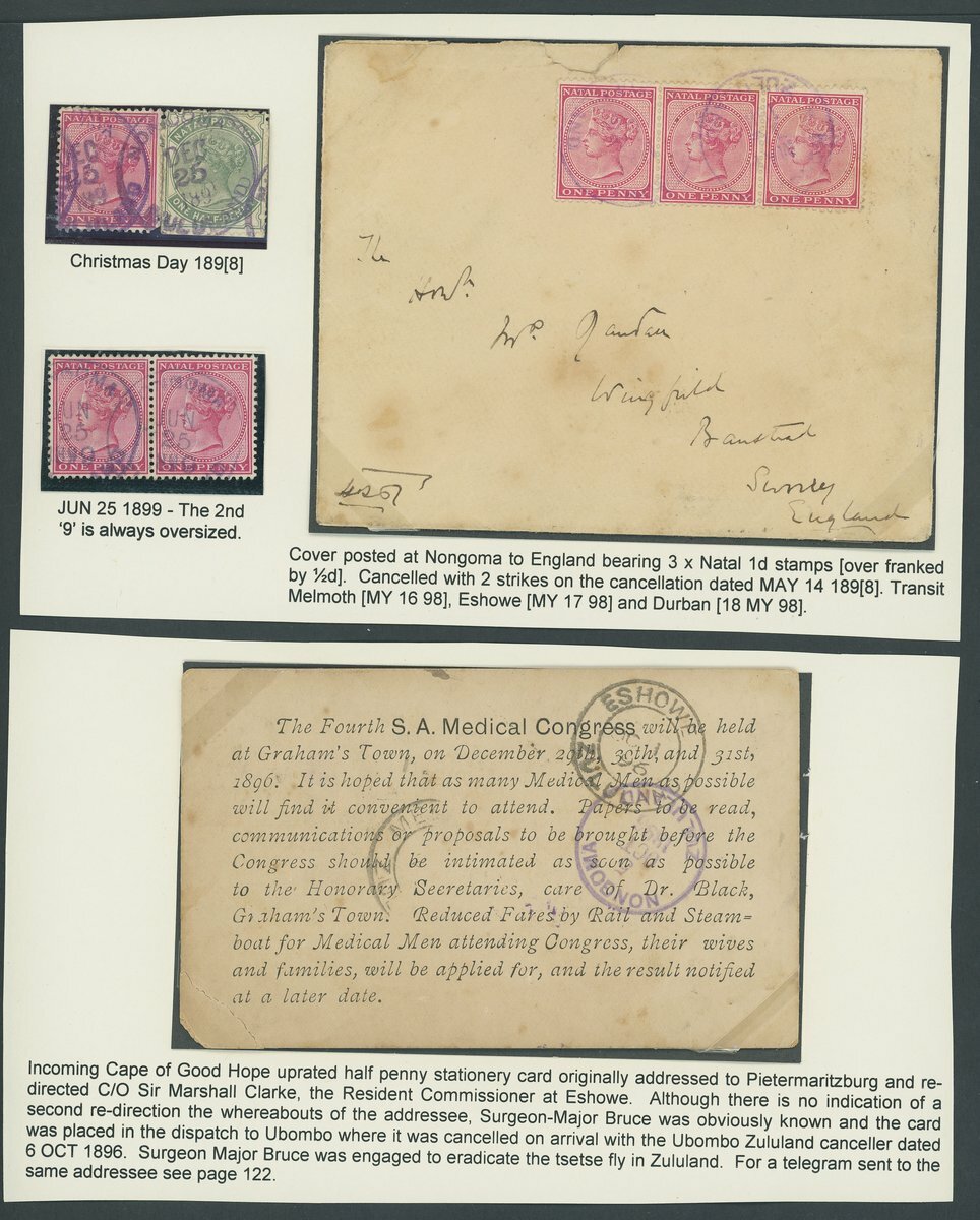 1898-99 group of covers and cards (4) comprising envelope to London bearing Natal 1d. (3) all tied by two faint strikes of