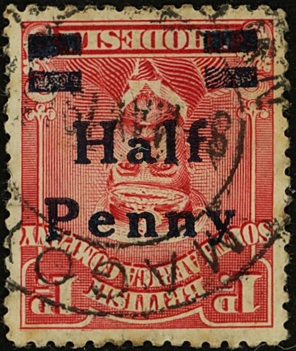 1917 Livingstone Provisional ½d. on 1d. rose-carmine, variety surcharge inverted, used with clear part