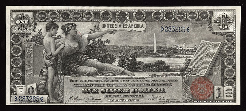 Fr.223. $1. Silver Certificate. 1896. No.2832652. A. Educational Uncirculated. Just a trace of natural wet paper wrinkling near the center. A fresh, crisp example with great eye appeal.