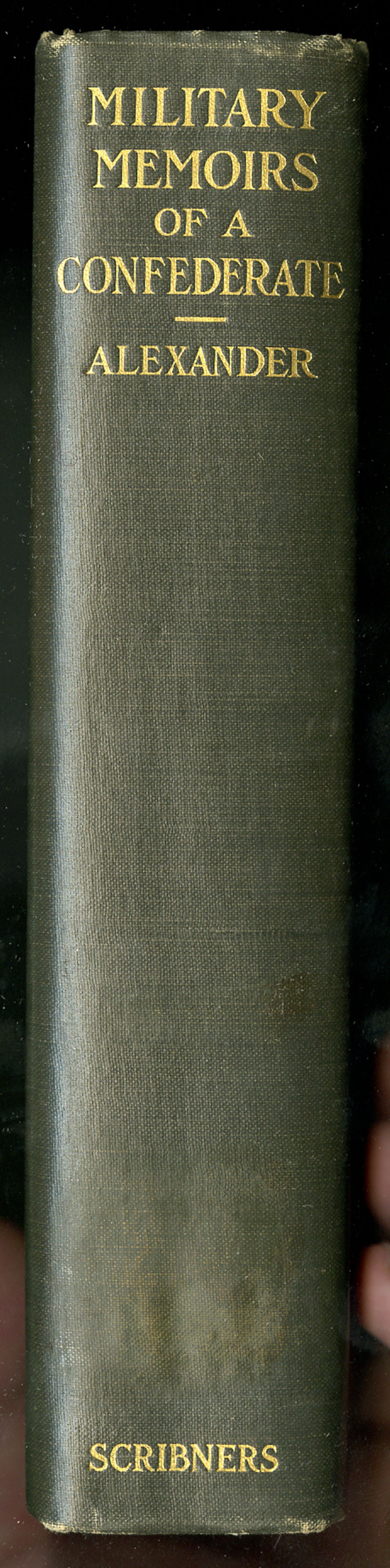 Civil War. Alexander, Edward Porter: Military Memoirs of a Confederate-A Critical Narrative. New York; Charles Scribner's Sons, 1908. 8vo, hard cover, frontis photo plates of Alexander, maps and tables, 634pp. A CSA Brigadier General during the war, Alexander commanded the massive artillery barrage preceding Pickett's Charge and is also noted for his early use of observation balloons during combat. Douglas Southall Freeman praised this work as "altogether the best critique of the operations of the Army of Northern Virginia". Ex-Libris East Hampton Library, some spine cover separation, diagonal fold last index page, clean pages, Very Good.
