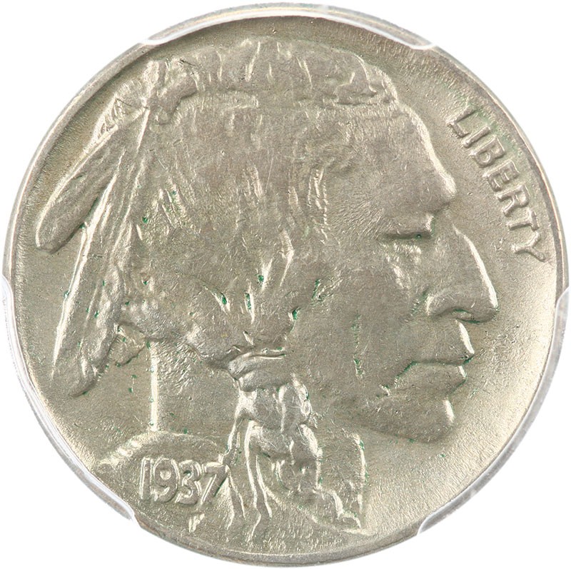 1937-D 3-Legged Buffalo Nickel. PCGS AU details, cleaning. The surfaces have been gently wiped in a misguided effort to bring up the surface luster of this handsome specimen. Though we must agree that this coin has been gently cleaned, it is nonetheless more appealing than many of its numerically graded brothers. No Buffalo Nickel collection is complete without an example of this very scarce Redbook variety.