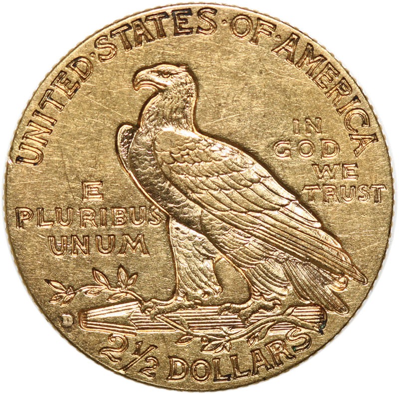 1914-D $2.5 Indian. Extremely Fine. This pale orange-golden example offers evenly worn design features.