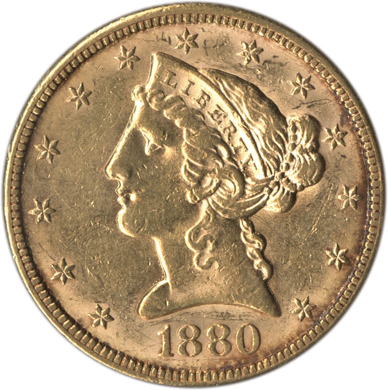 1880 $5 Liberty. A strong AU and offering plenty of mint frost. Hints of coppery toning accent the obverse periphery.