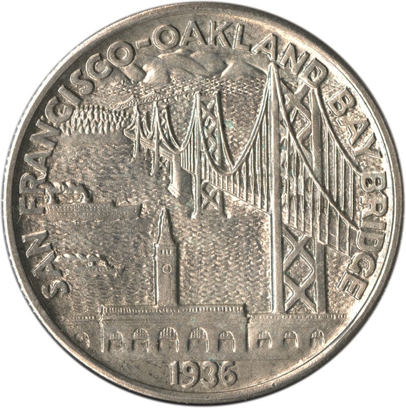 1936 Bay Bridge Half Dollar. Brilliant Uncirculated and approaching a Choice classification. Subtle lavender-golden toning complements underlying mint frost.