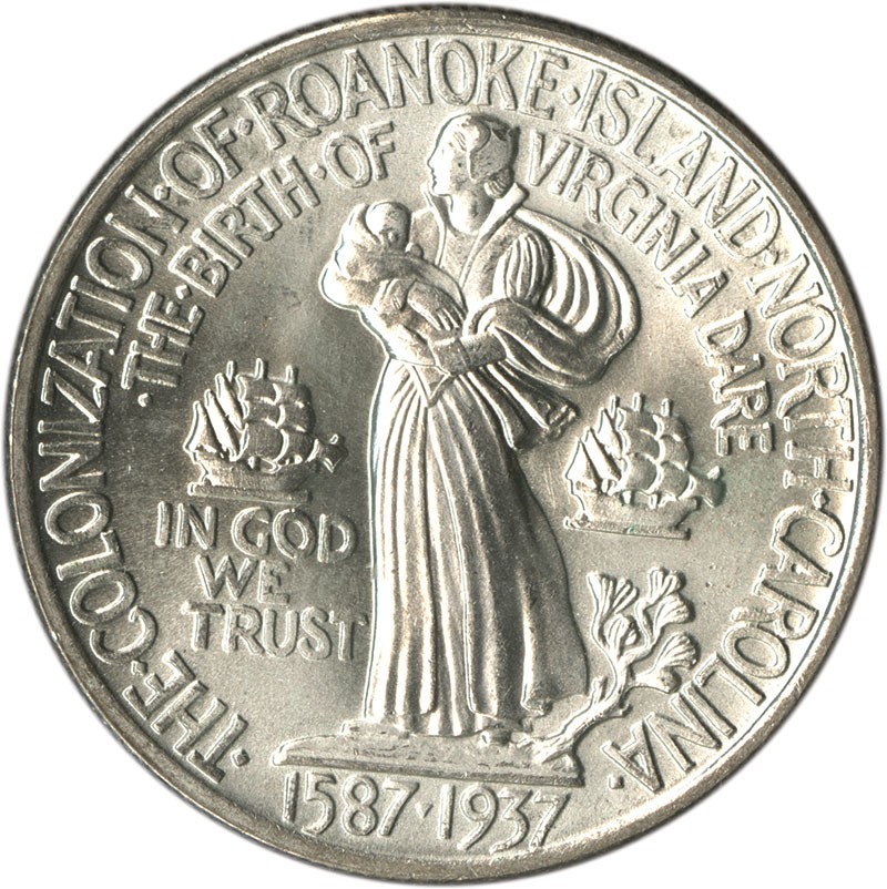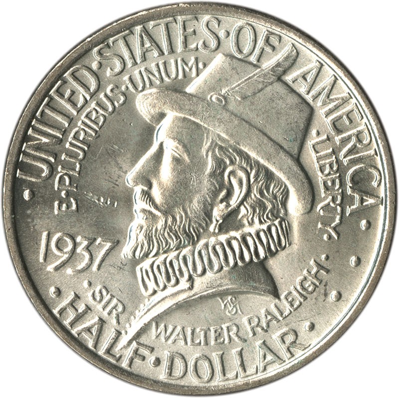 1937 Roanoke Half Dollar. Brilliant Uncirculated with claims to the Choice category. Shallow reeding marks in the left obverse field preclude a higher grade. The reverse is essentially Gem.