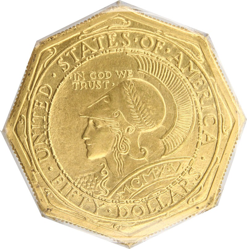 Produced during what many numismatists consider to be the height of the so-called "Renaissance" of American coinage, the Panama-Pacific Exposition $50 gold pieces have rightfully earned the distinction of being among the most coveted coins ever to be struck by The U.S. Mint. Possessing the "total numismatic package", this glorious issue both in its round and octagonal varieties enjoys the utmost in aesthetic beauty, historicity, and rarity. The example offered here, furthermore, is of a quality level that is quite distinctive in light of the large size and fragile nature of Robert Aitken's open and exposed design.