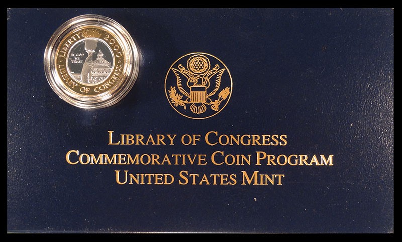 2000 Library of Congress Bi-Metallic Proof $10 Gold. A very scarce issue. In original Mint packaging.