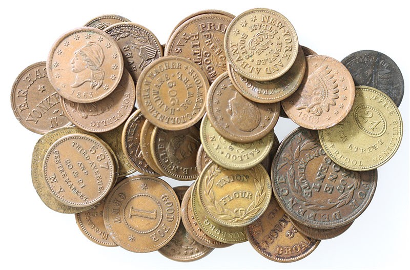 A Nice Assortment of Civil War Tokens. This lot includes a high grade example of the Monitor patriotic token and numerous (35) additional tokens in the store card venue as well as other types of marvelous research groups. Many in EF-AU grades. Should be seen. Sure to please. [36]