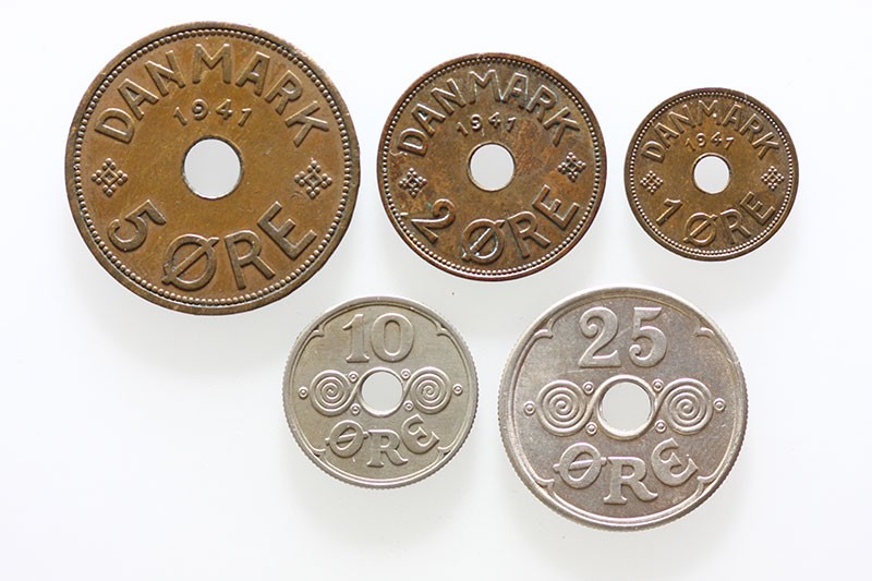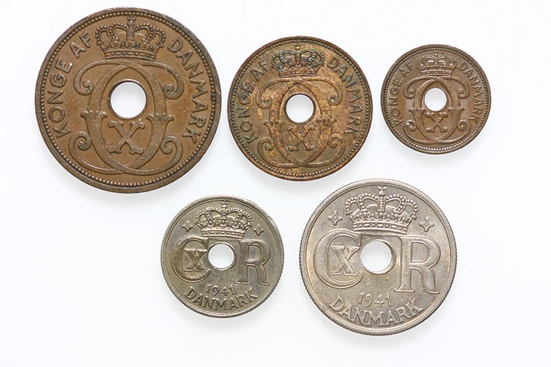 Færøe Islands. Danish State. Complete 5-coin Set - Øre, 2, 5, 10, 25 Øre, 1941. London. Sieg 1-5, KM 1-5. Extremely Fine-About Uncirculated. (5)