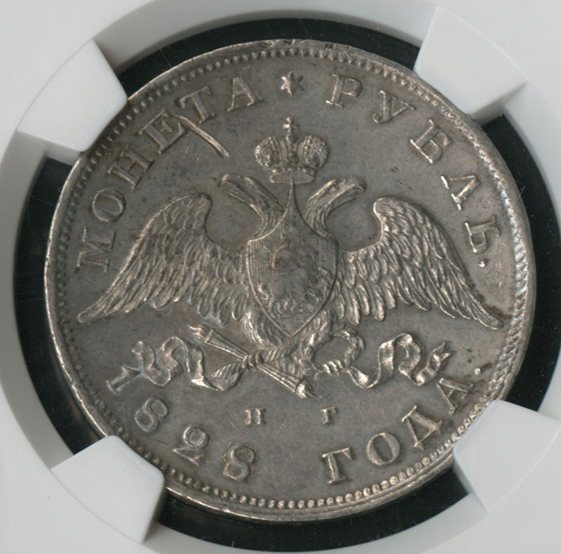 Russia. Nicholas I (1825-1855). Pair of Encapsulated Rubles: 1823 ??, 1828 H?. Imperial eagle with wings up, Imperial eagle with wings down. Cr. 130, 161. ICG EF45 Details Corroded-Cleaned; NGC AU Details Scratches. (2)