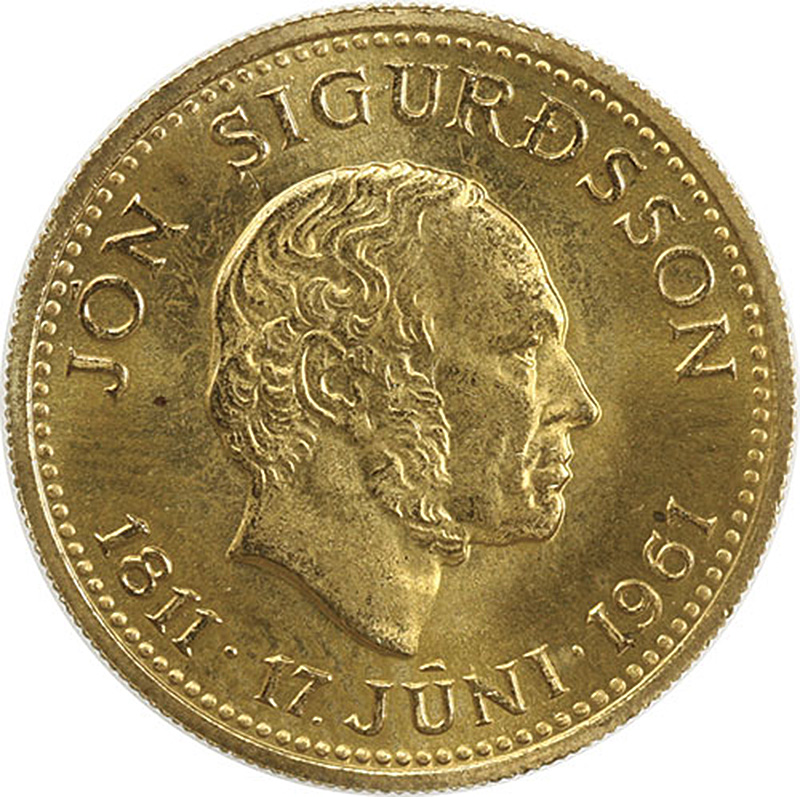 Iceland. Republic. Jon Sigurdsson Sesquicentennial. 500 Krónur, 1961. Sigurdsson head r., rev. Supported Arms. KM 14. 10,000 minted. Gem Brilliant Uncirculated.
