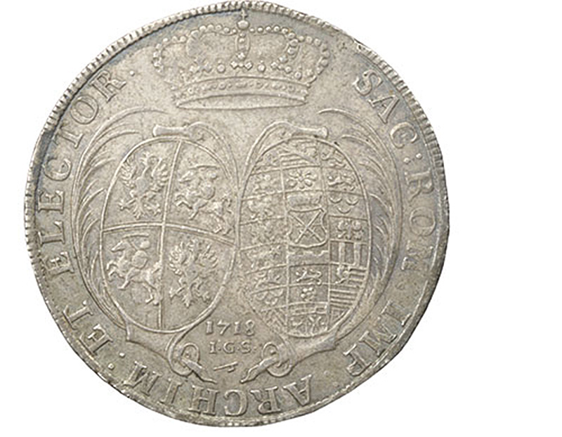 German States. Saxony. Friedrich August I - Augustus II, "the Strong"(1694-1733) [King of Poland, 1697-1706, 1709-1733]. Taler, 1718 I.G.S. Laureate, draped and cuirassed bust r., rev. Polish and Saxon Arms side-by-side, furled in spray, crown above. Dav. 2653, KM 776. Lavender-gray with soft iridescent hues and decent lustre. Extremely Fine.