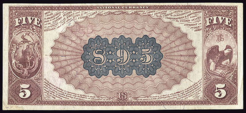 The only other $5 Brown Back, described as VF, appeared in a Heritage auction in 2009 and realized $2,875. The current example was acquired by John in 1967.