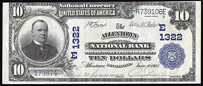 PA. Allentown. Ch.E1322. Allentown National Bank. $10. 1902 PB. Fr. 598. No.179874/R739106E. Plate M. EF.