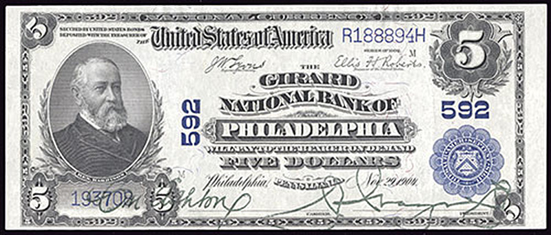 PA. Philadelphia. Ch.592. Girard National Bank of Philadelphia. $5. 1902 PB. Fr. 598. No.193708/R188894H. Plate M. VF-EF. .