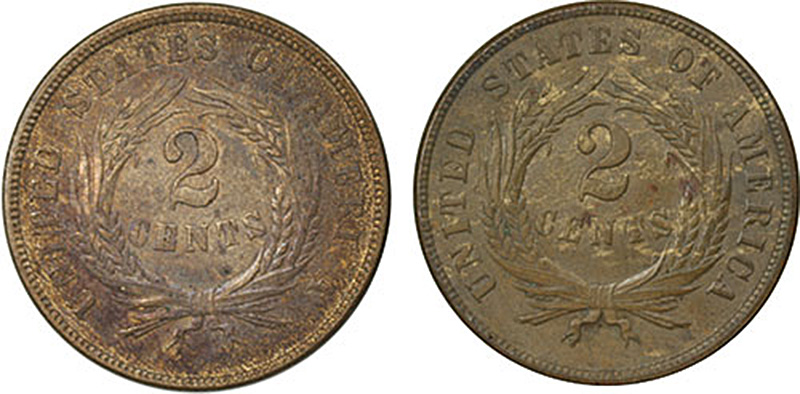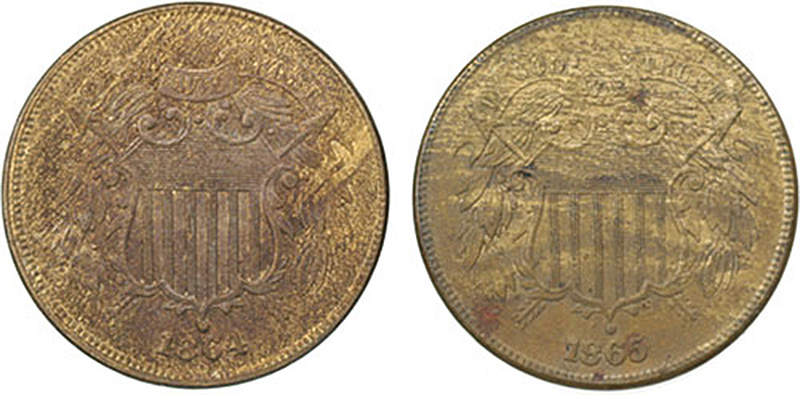 Two Cent Piece Duo. 1864; 1865. Both red and brown Uncirculated. [2]