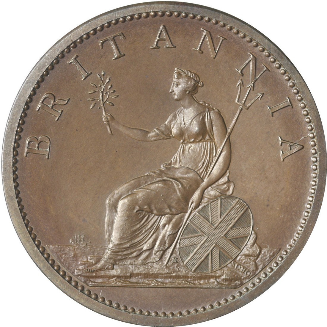 Great Britain. George III (1760-1820). Penny, 1806. Bronzed Proof. Shorter-haired, laureate and draped bust r., rev. Britannia seated l. Peck 1323, S.3780, KM 663a. A few faint friction hairlines. Lovely vermilion hues. Brilliant Proof.