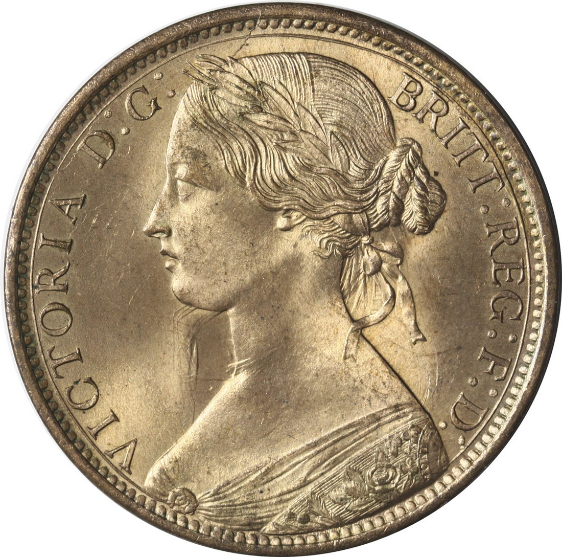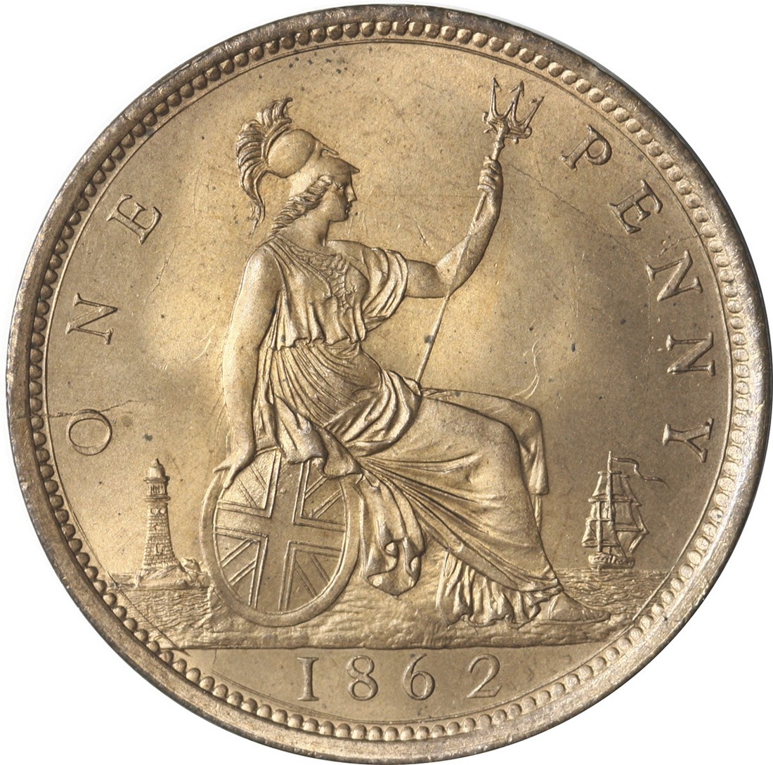 Great Britain. Victoria (1837-1901). Penny, 1862. No obverse signature. Young bust l., rev. Britannia seated r. S.3954, KM 749.2. A few minor diebreaks. Near full mint red. Choice Brilliant Uncirculated.