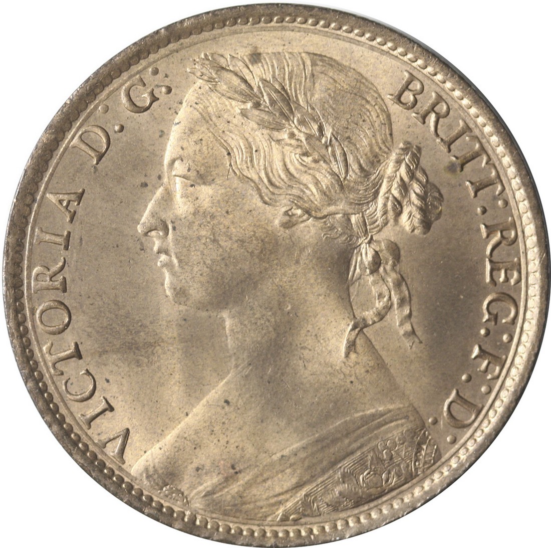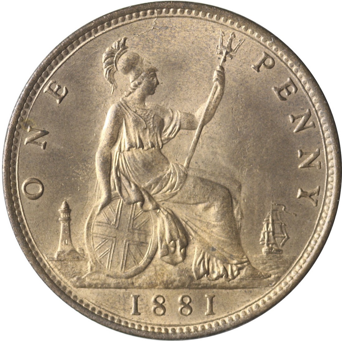 Great Britain. Victoria (1837-1901). Penny, 1881. Obverse and first reverse of '80. Mature bust l., rev. Britannia seated r. Freeman 102 (R8), S.3954, KM 755. Choice Brilliant Uncirculated.