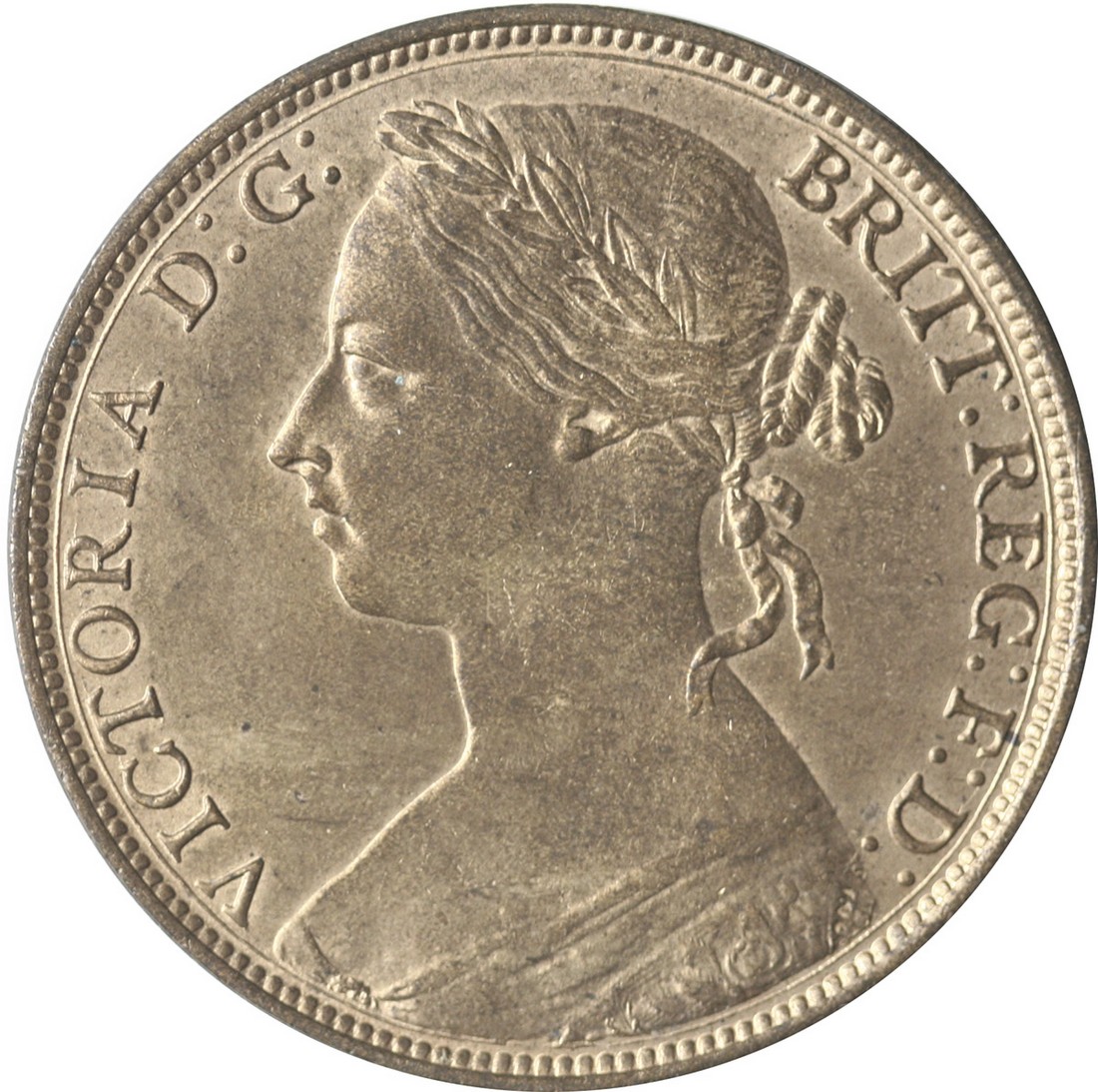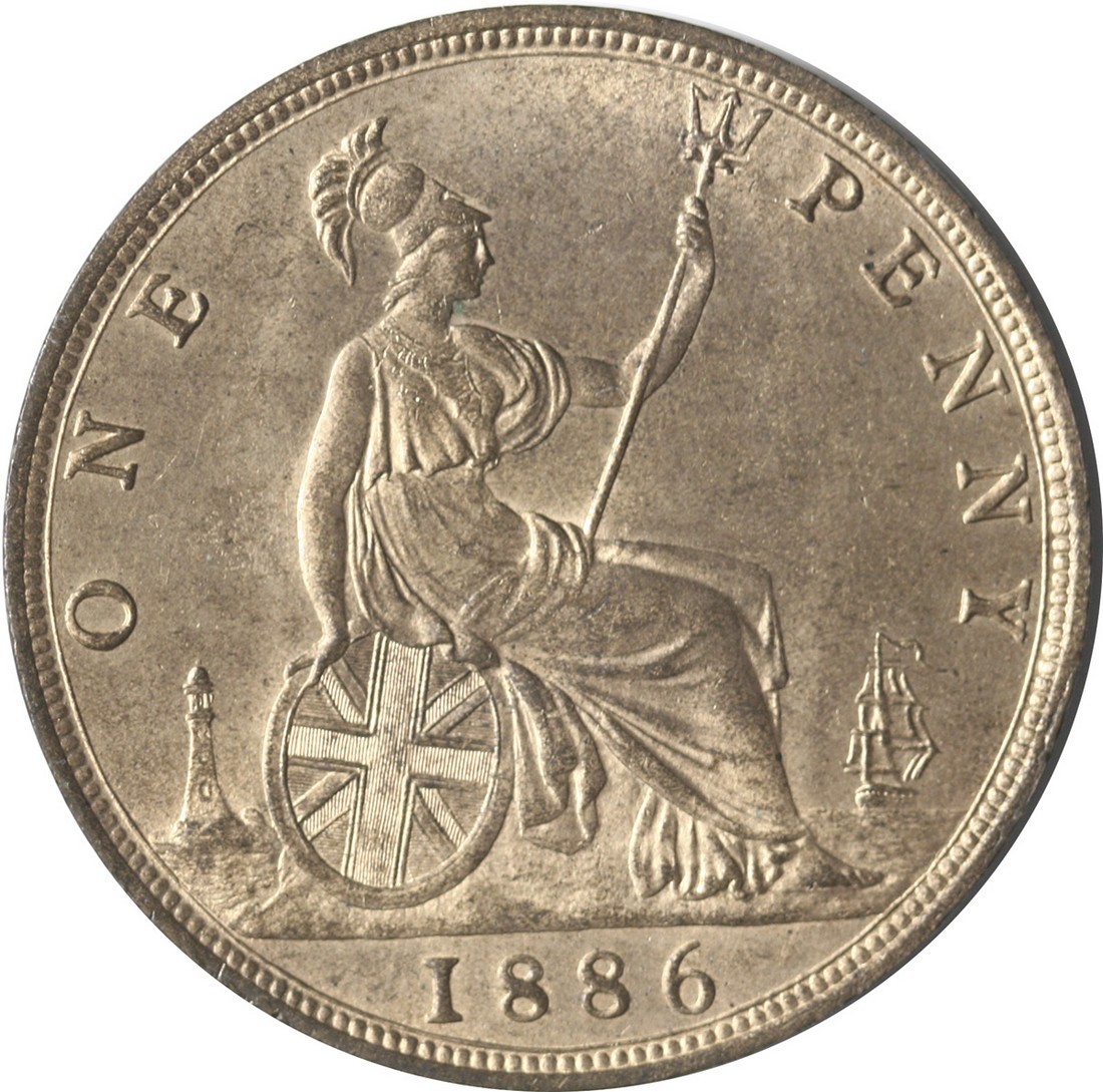 Great Britain. Victoria (1837-1901). Penny, 1886. Mature bust l., rev. Britannia seated r. S.3954, KM 755. Red and brown. Choice Brilliant Uncirculated.