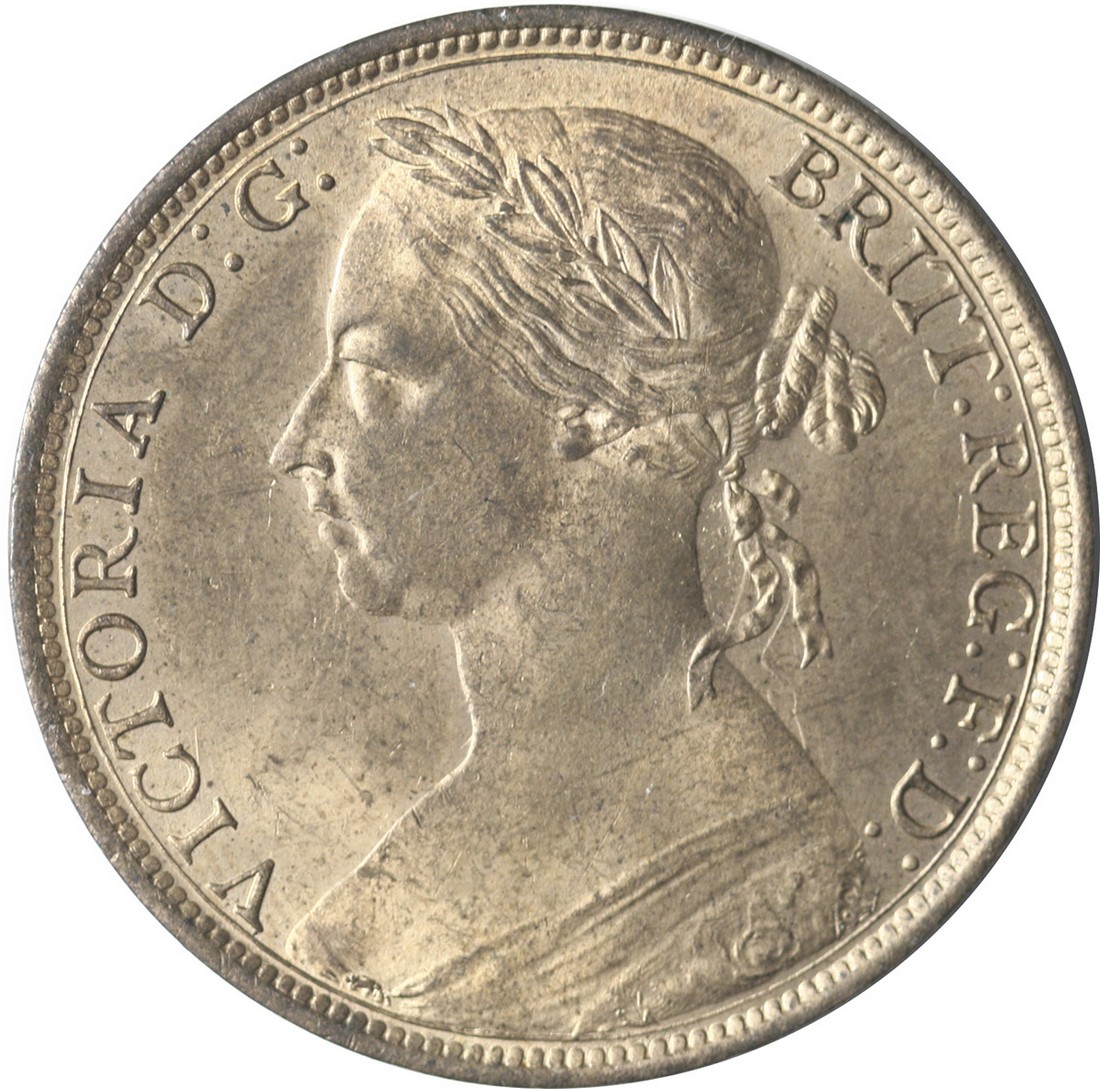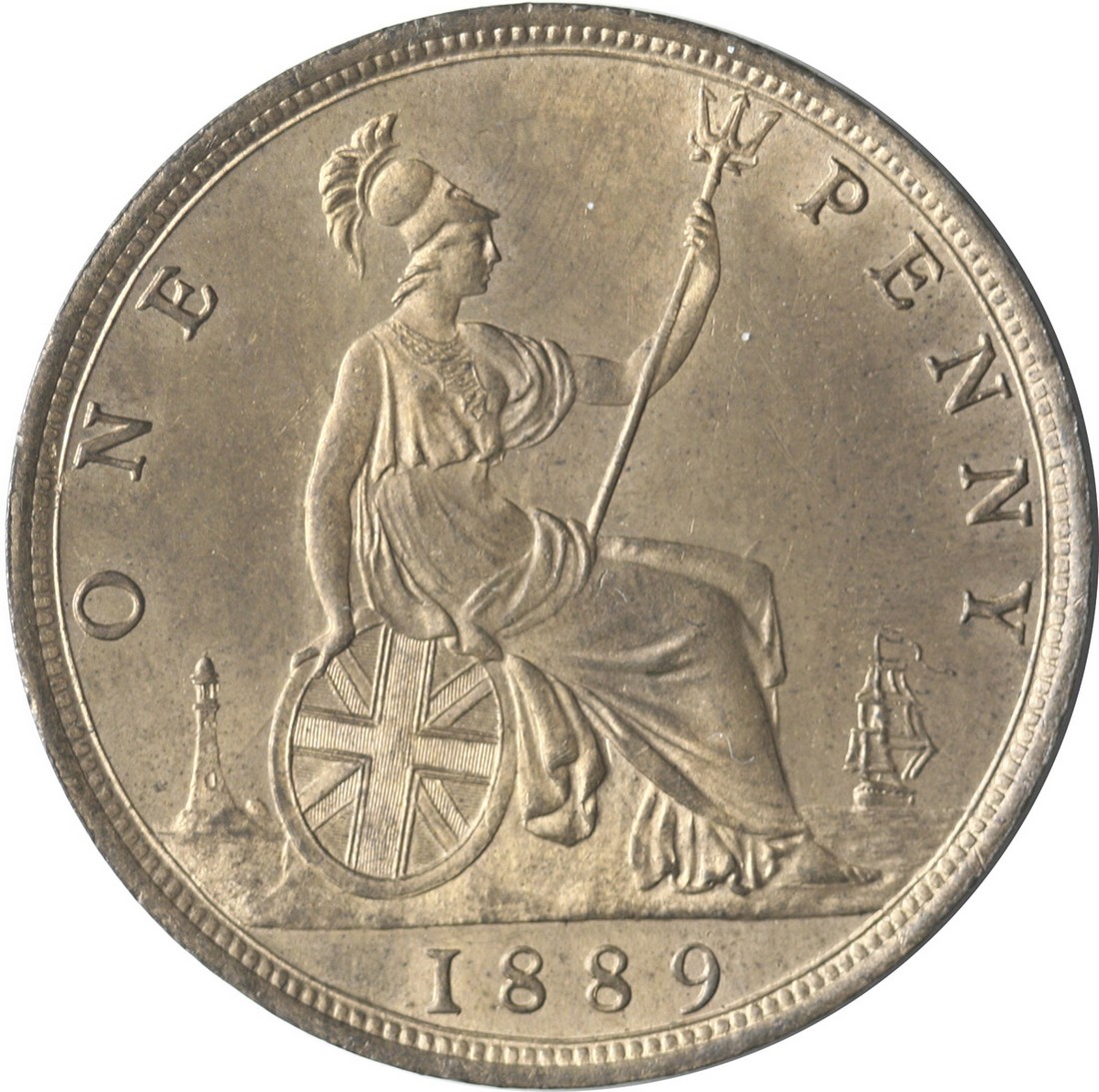 Great Britain. Victoria (1837-1901). Penny, 1889. 15 leaves obverse. Mature bust l., rev. Britannia seated r. Freeman 127 (R9), S.3954, KM 755. Red and brown. Brilliant Uncirculated.