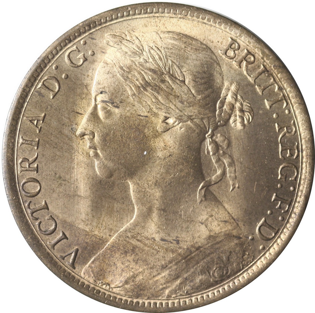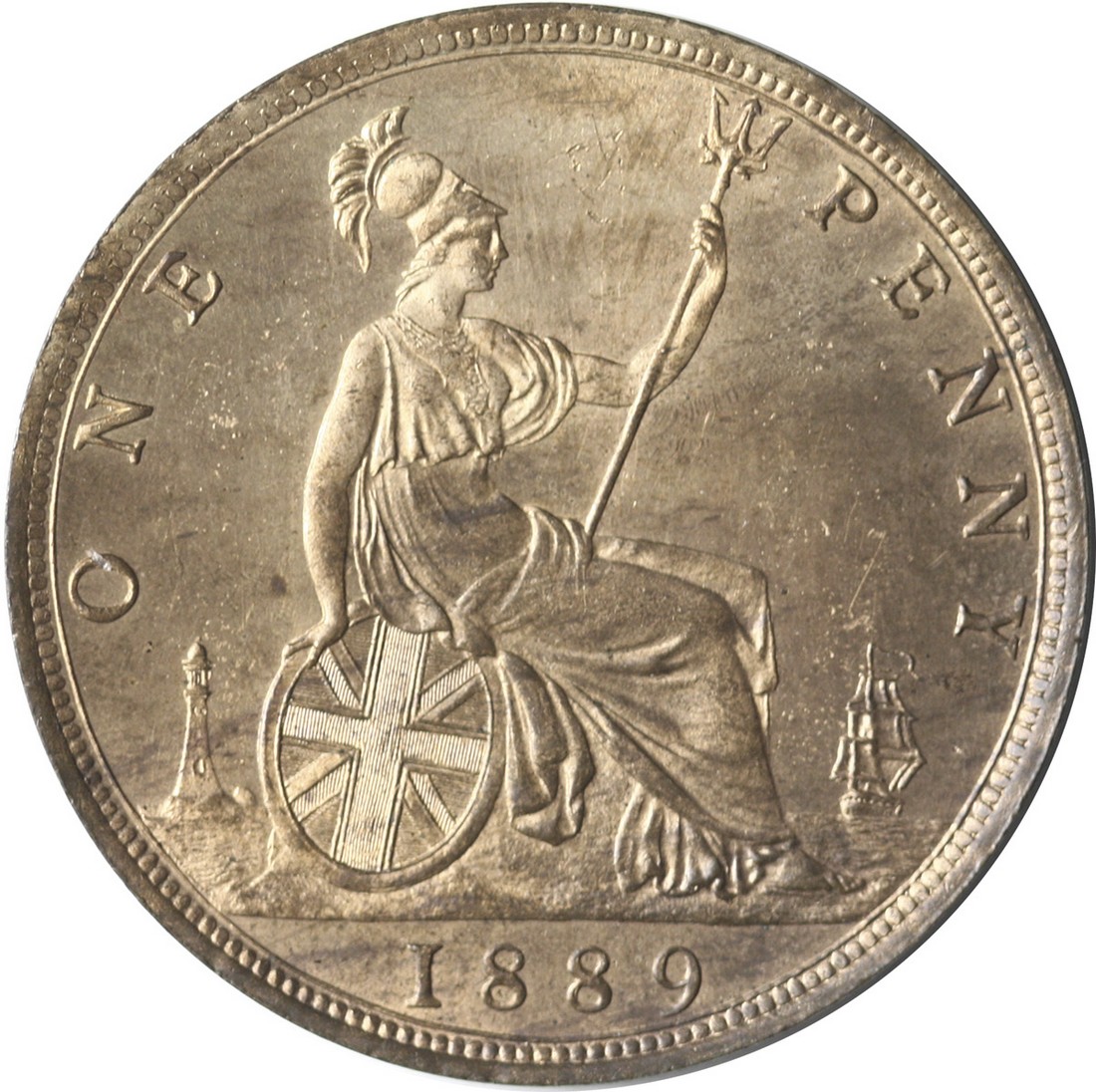 Great Britain. Victoria (1837-1901). Penny, 1889. 14 leaves obverse. Mature bust l., rev. Britannia seated r. Freeman 128, S.3954, KM 755. Mostly mint red. Choice Brilliant Uncirculated.