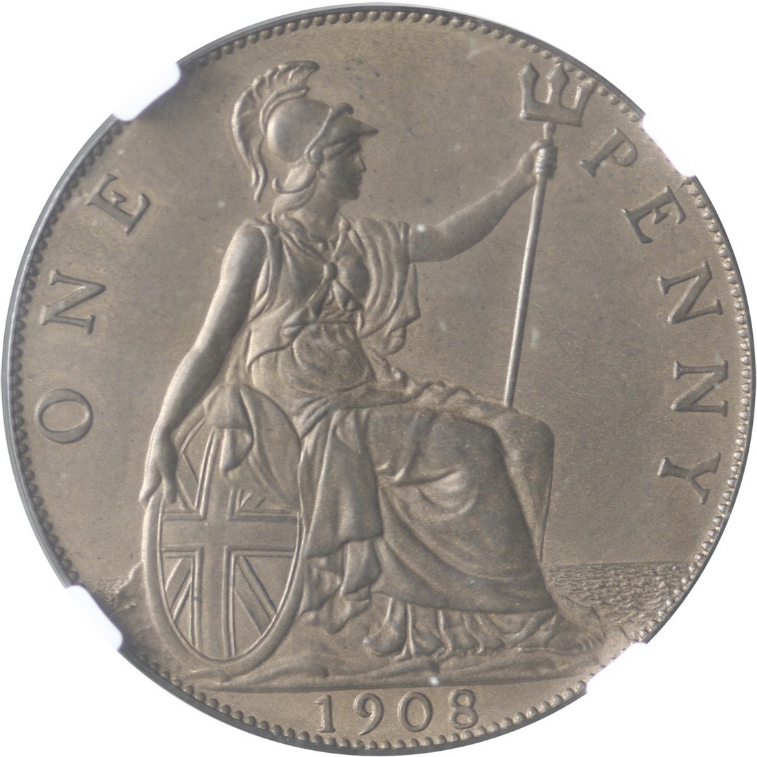 Great Britain. Edward VII (1901-1910). Matte Proof Penny, 1908. Bare head r., rev. Britannia seated r. S.3990, KM 794.2. Extremely Rare with only 3 pieces recorded. NGC PF 65 BN MATTE.