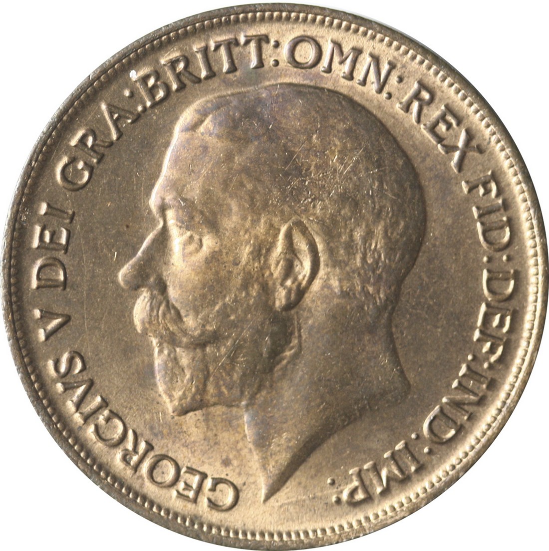 Great Britain. George V (1910-1936). Penny, 1918 KN. King's Norton. Head l., rev. Britannia seated r. S.4053, KM 810. Sharp strike, red and brown. Choice Brilliant Uncirculated.