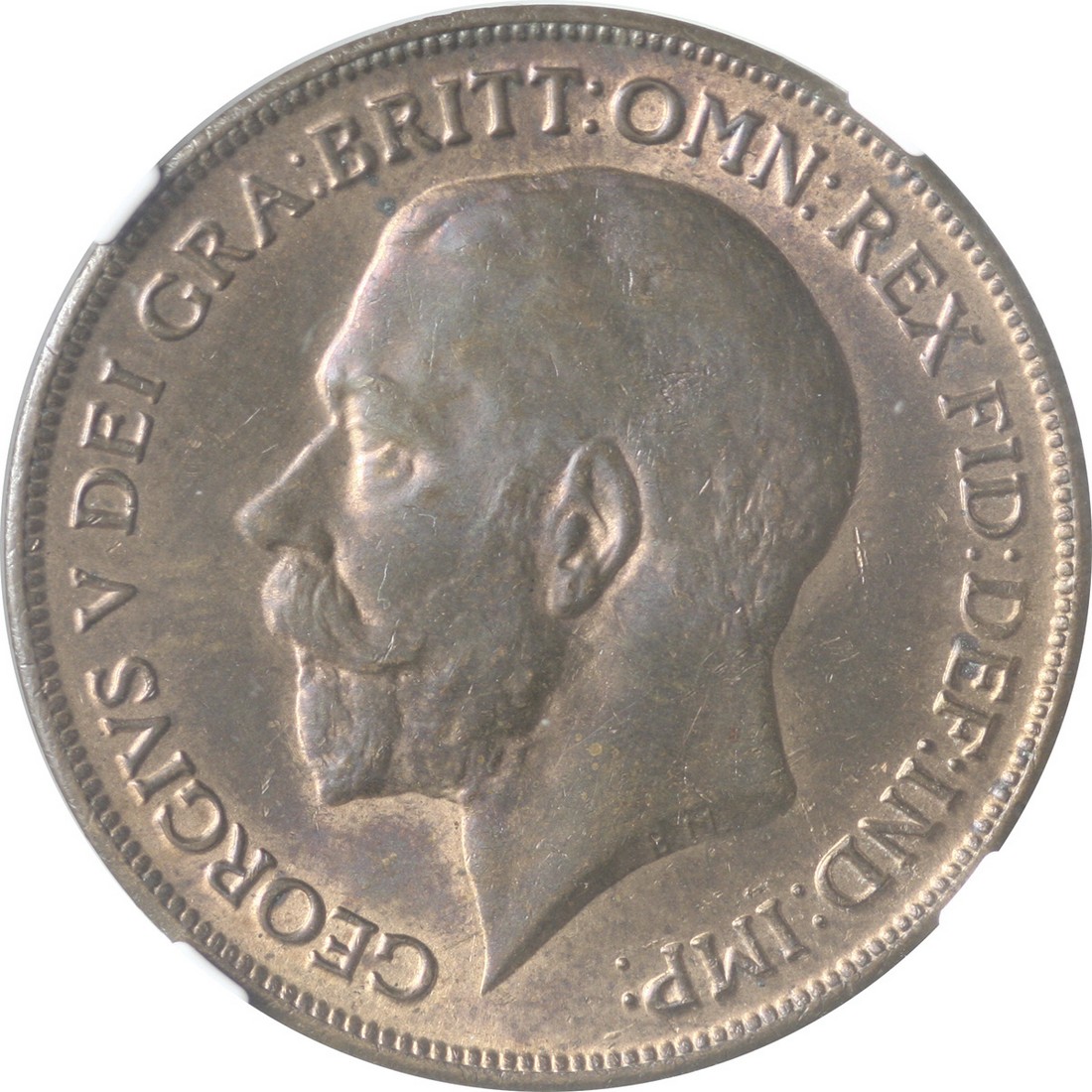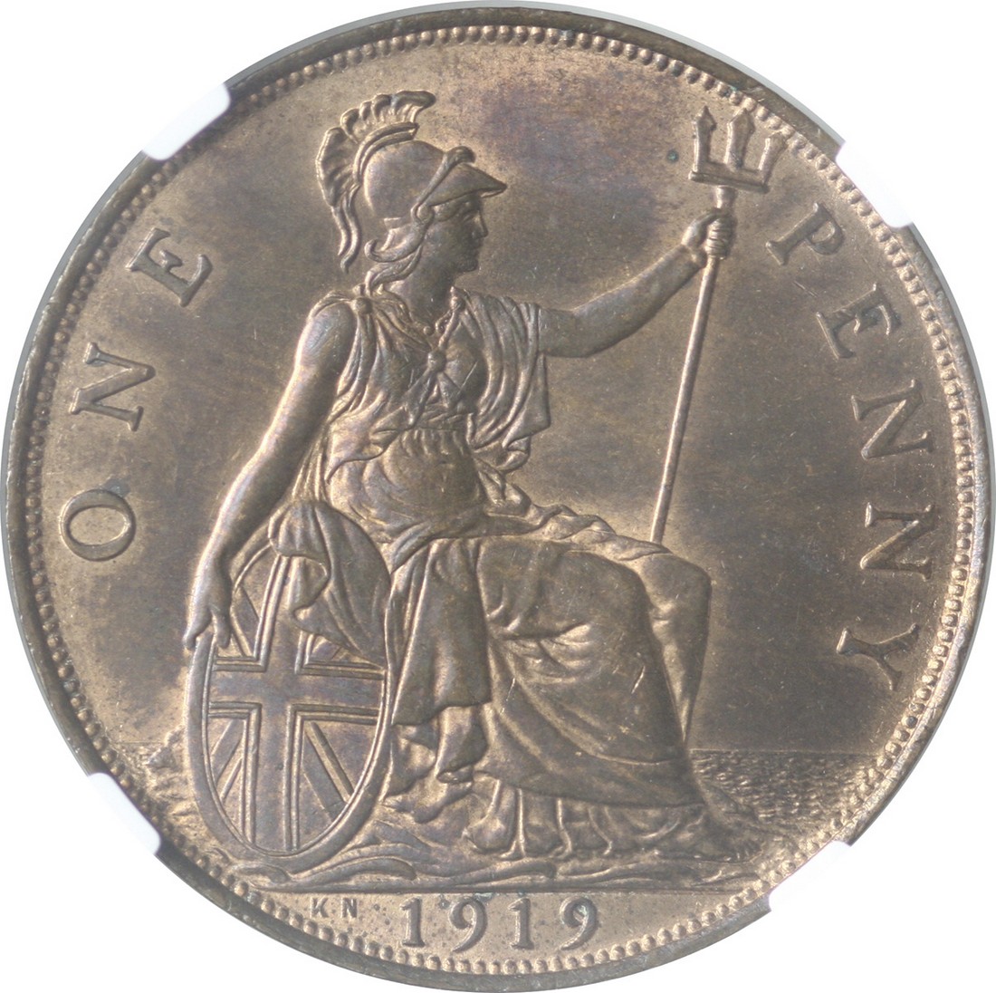 Great Britain. George V (1910-1936). Penny, 1919 KN. King's Norton. Head l., rev. Britannia seated r. S.4053, KM 810. A bold and very choice example. NGC MS 65 RB.