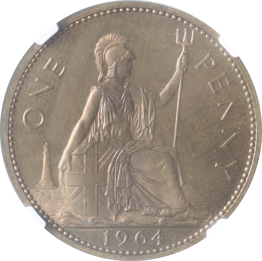 Great Britain. Elizabeth II (1952-). Proof Penny, 1964. Bust r., rev. Britannia seated r. S.4157, KM 897. Extremely Rare. NGC PF 66 RB.