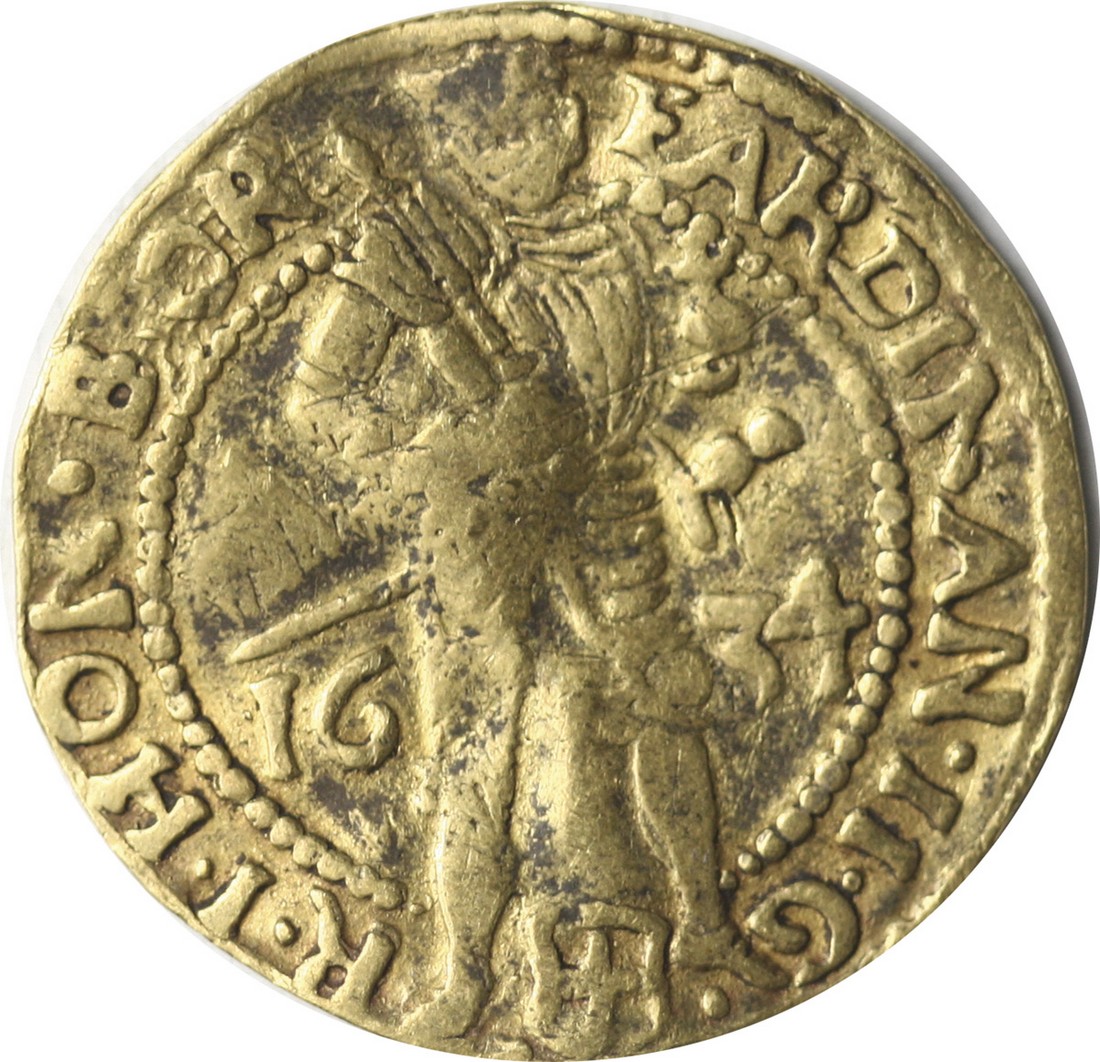 Netherlands. Zwolle. Commune. Ducat, 1634. 3.28 gms. Armored figure of the H.R.E. standing r., his name spelled "FARDINAN. II" in the legend, rev.Four-line city legend on elaborate tablet. Fr.213, KM 34. About Fine-Fine.