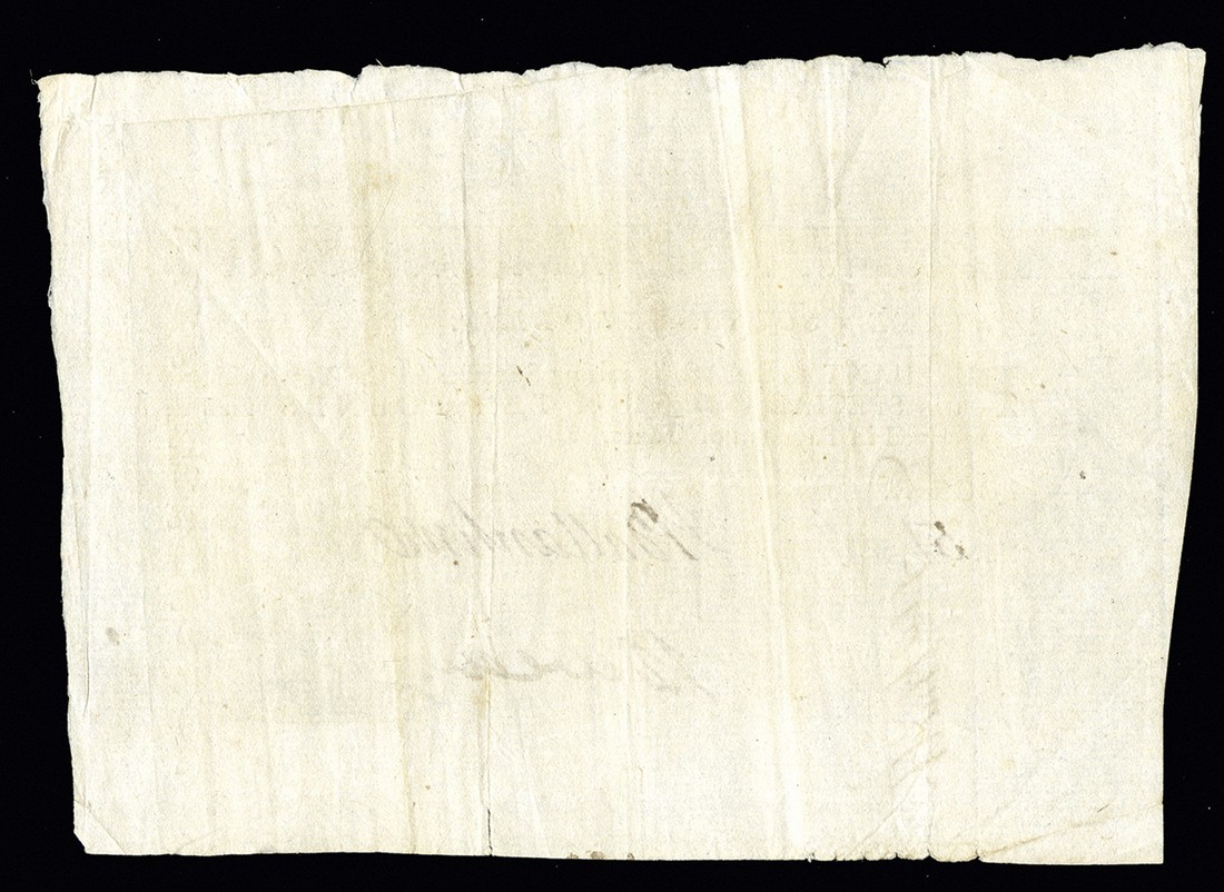 No examples from the 1788 South Carolina series appeared in Ford. No examples from this series are priced in Newman, and he indicates no auction appearances. Rare, and perhaps unique. A real trophy for the most discriminating collector of South Carolina paper money.