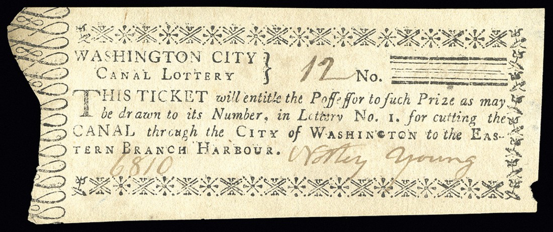 Washington City Canal Lottery 12. #6810. AU. Small chip in the right margin.