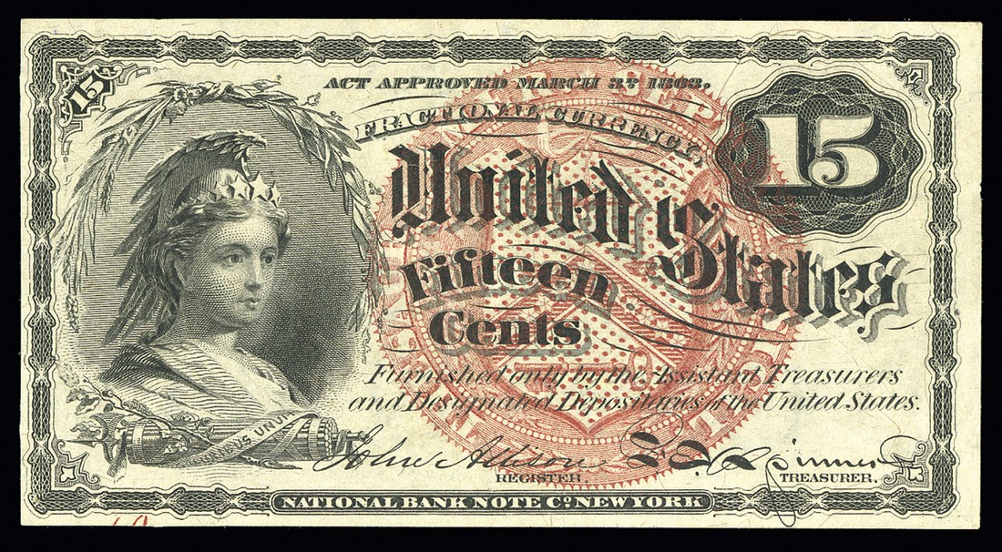Fr.1267. 15 Cents. Fourth Issue. Large red seal. Watermarked paper. PCGS Extremely Fine 40 PPQ.