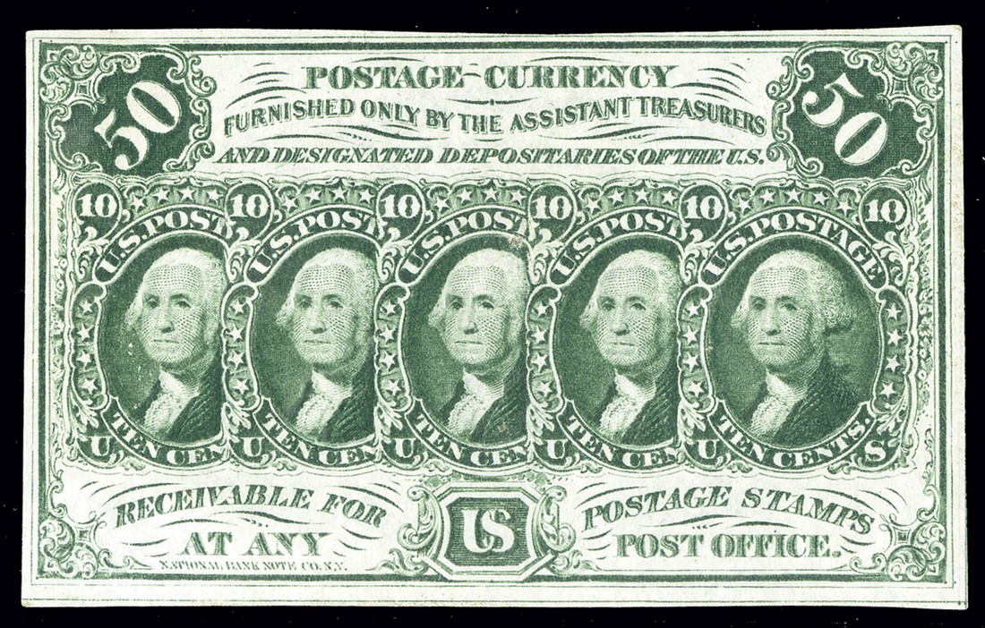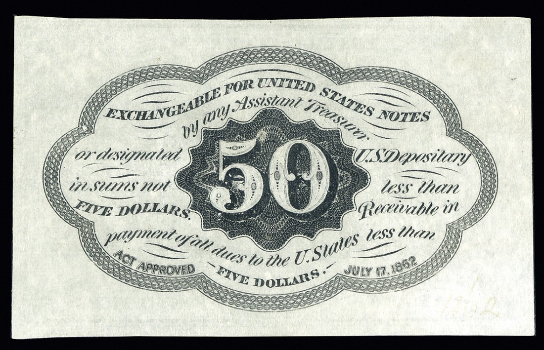 Fr.1313. 50 Cents. First Issue. Straight edges. No monogram. PMG About Uncirculated 55.