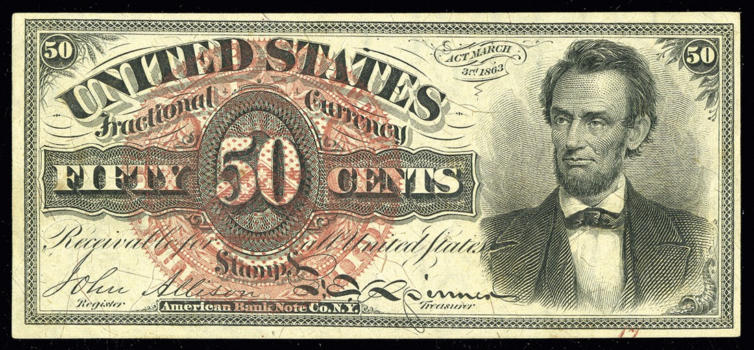 Fr.1374. 50 Cents. Fourth Issue. Lincoln. PCGS Choice About New 58 PPQ.