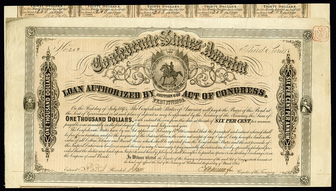 CSA. Act of February 17, 1864. $1000. Ball 312. Cr. 144B. Equestrian Statue of Washington. Third Series. Apperson. VF-VF+. Most are quite nice; a few with some margin soiling or rough edges. [24]