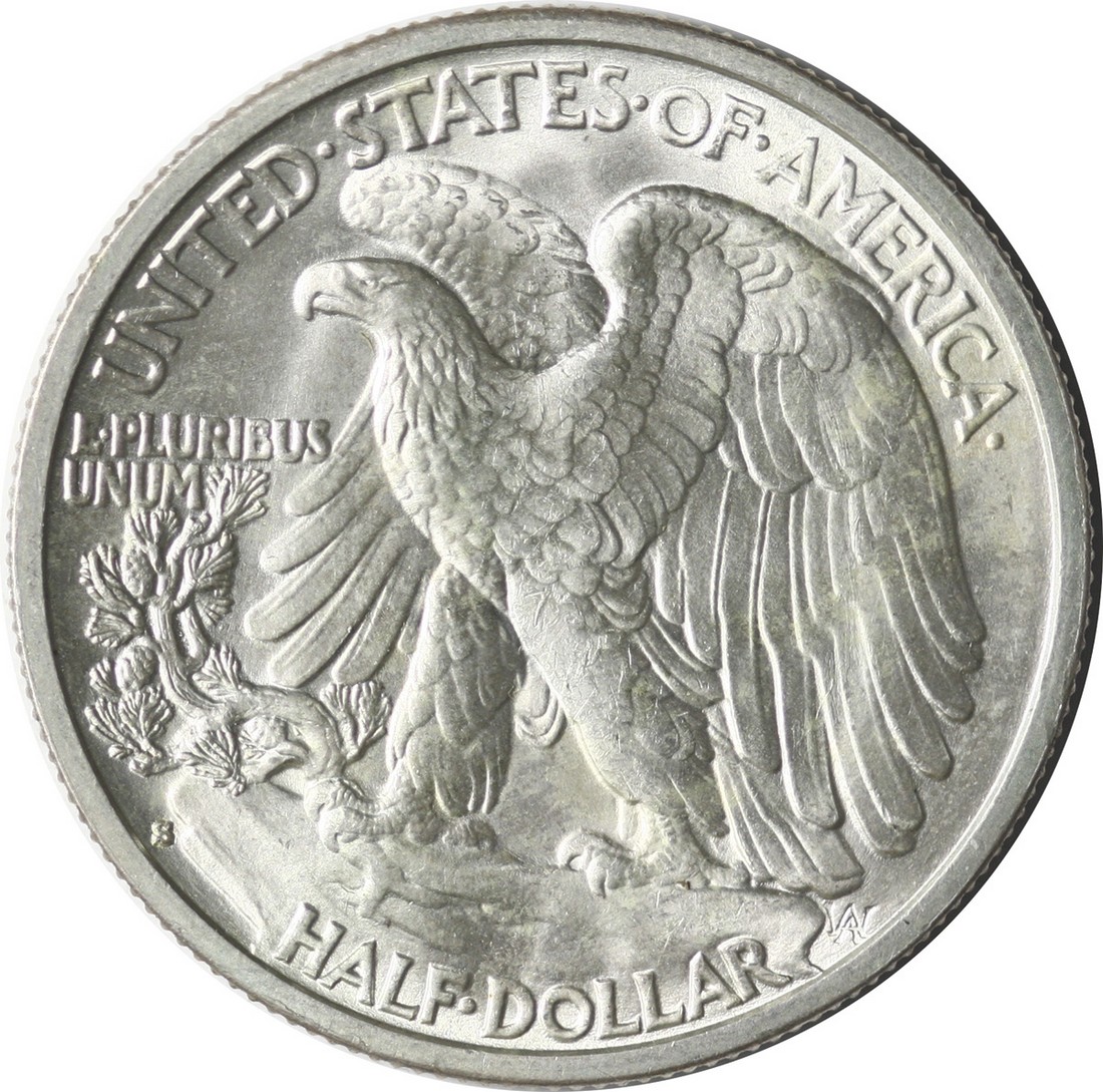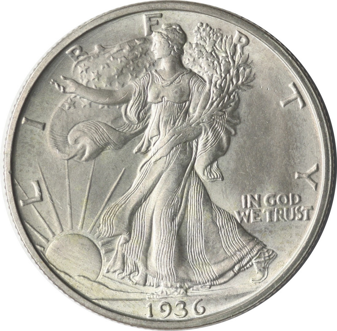1936-S. Walking Liberty Half Dollar. Choice BU. Satiny surfaces with light hints of toning. The strike is almost full.